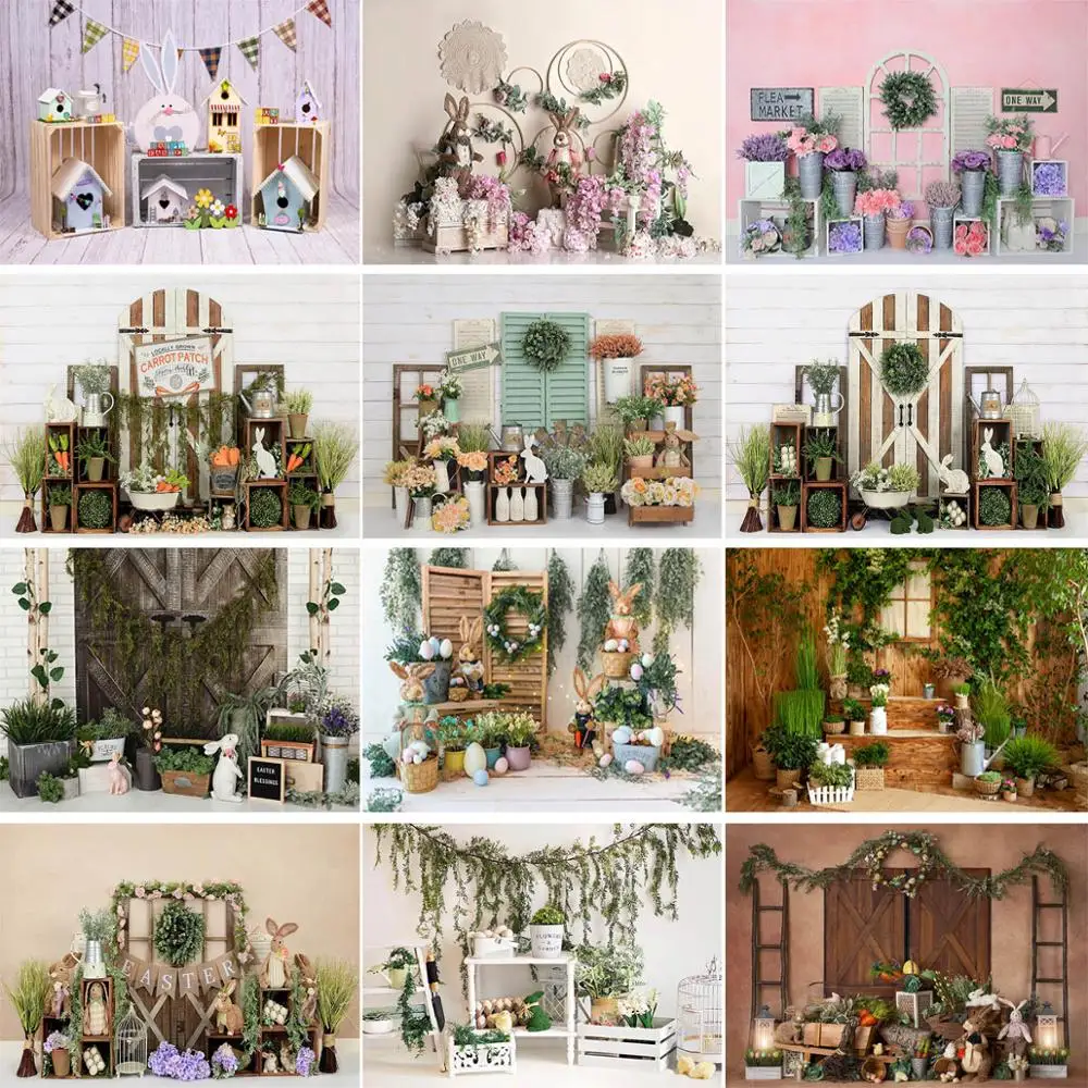 Фон для фотосъемки с изображением весенней Пасхи свежих цветов и венка