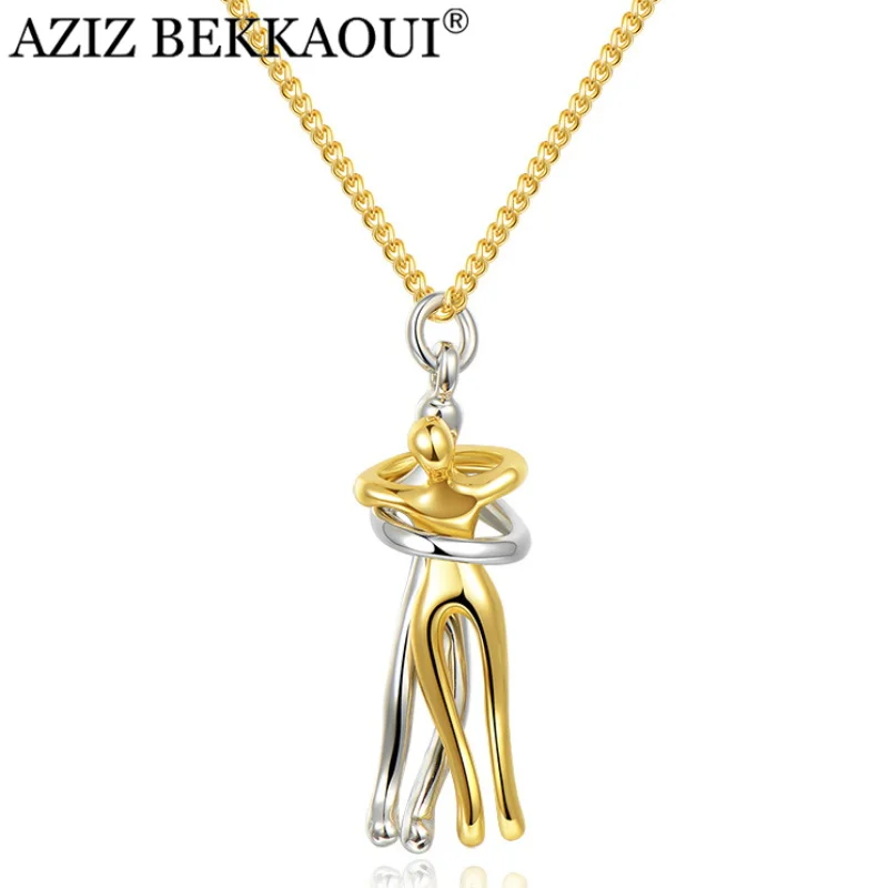 AZIZ BEKKAOUI ожерелье из нержавеющей стали пара обнимающая Подвеска Ожерелье поцелуй объятие ожерелье для женщин мужчин Любовь лучший свидетель подарок