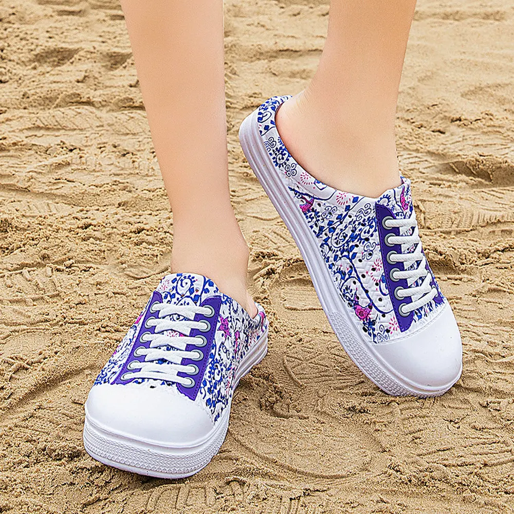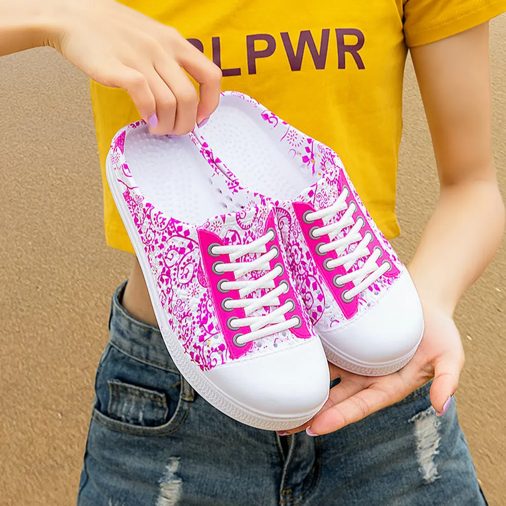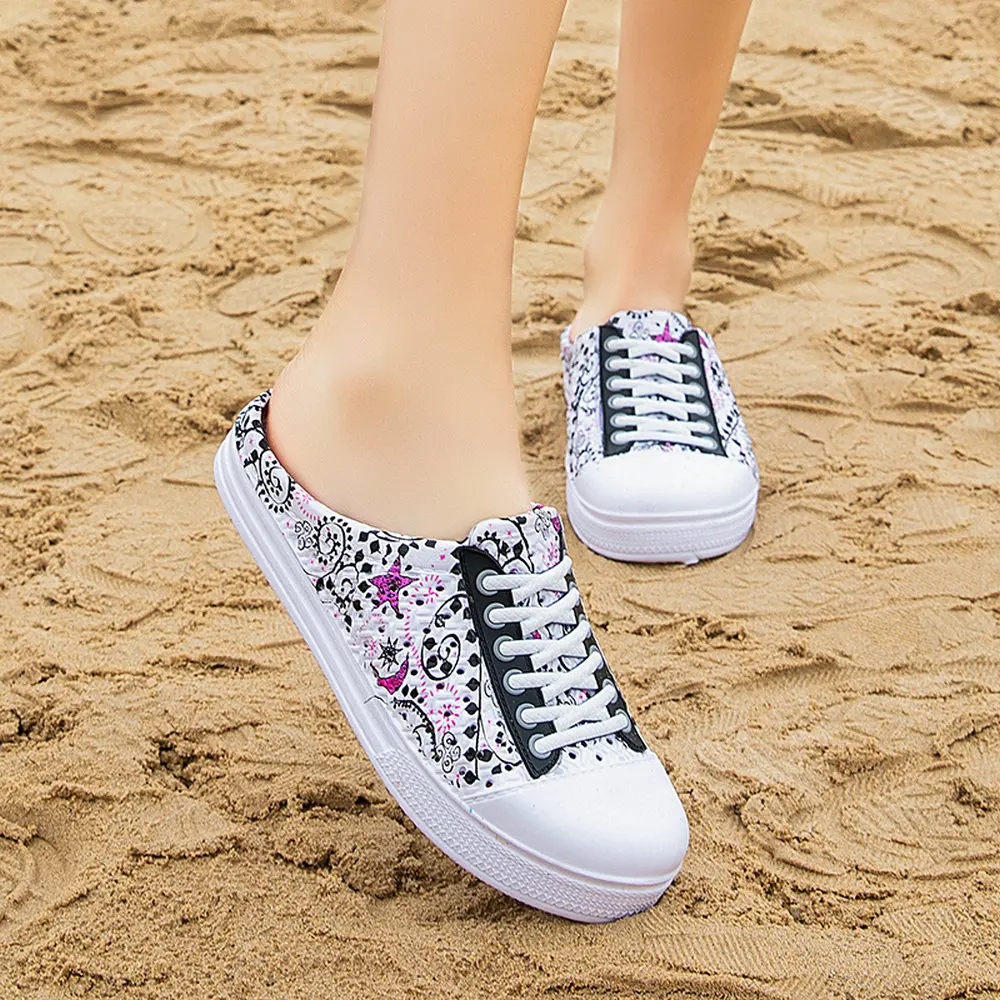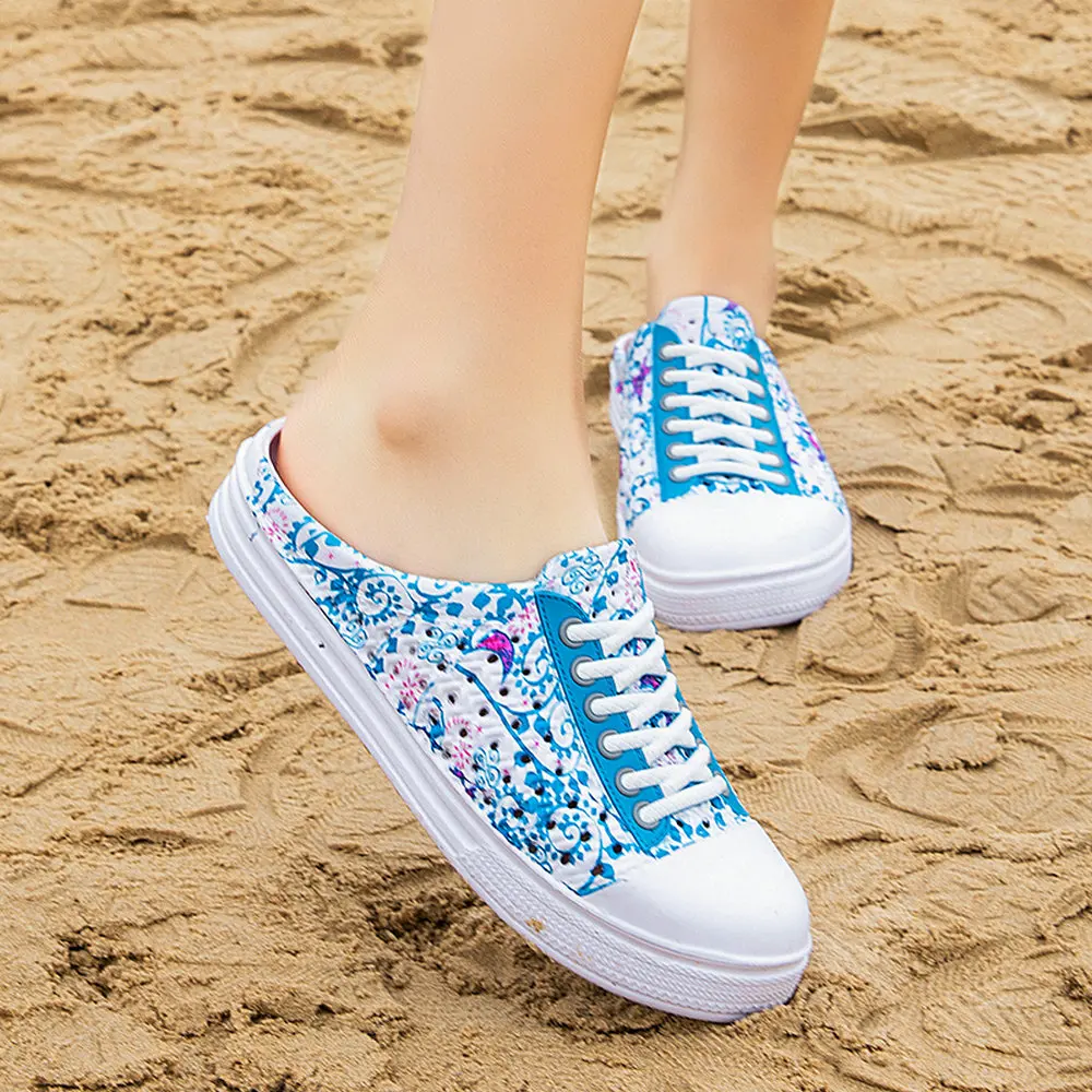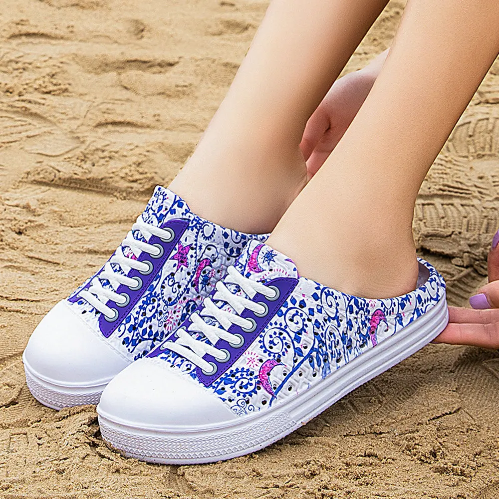Женские парусиновые шлепанцы Newbeads, летние шлепанцы без каблука для скейта, кроссовки на плоской подошве с дырками