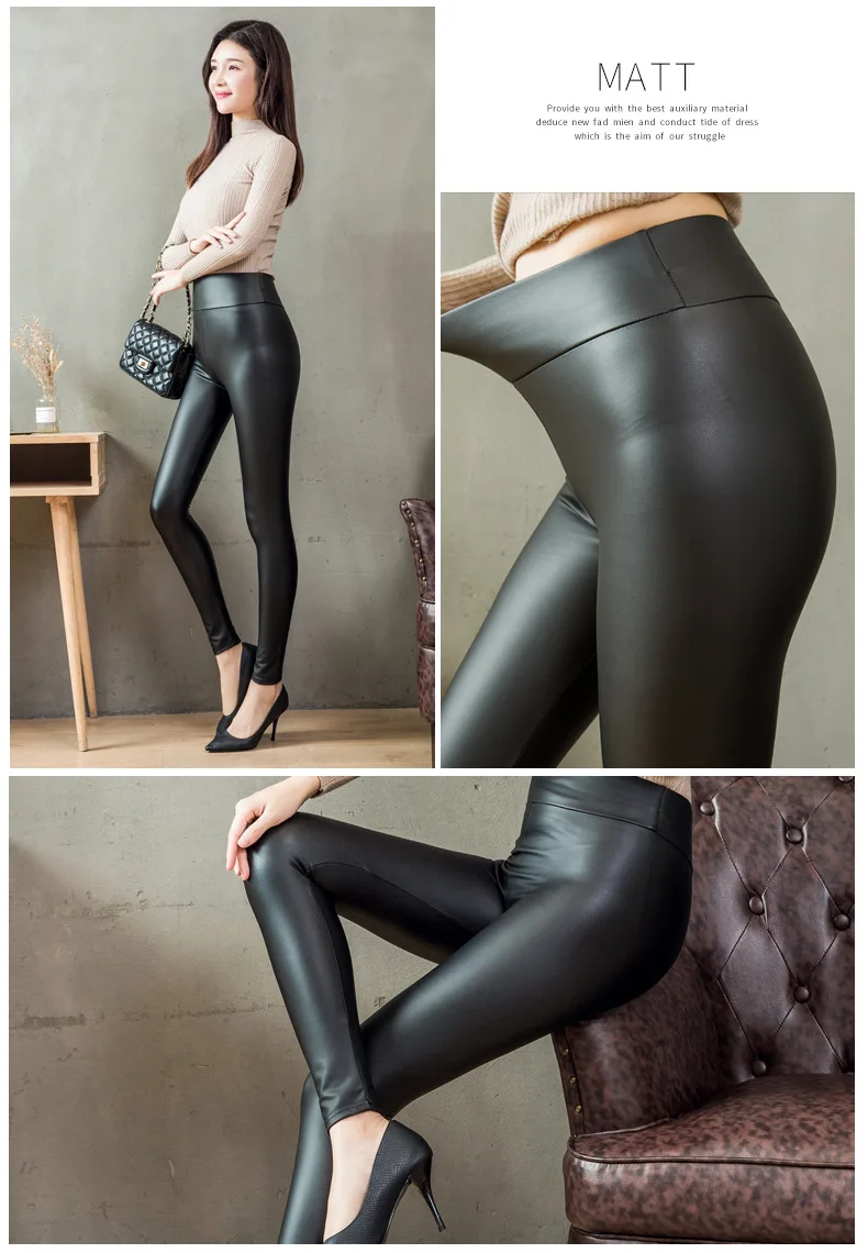 Леггинсы Everbellus женские из искусственной кожи, леггинсы с завышенной талией, тонкие и плотные бархатные, однотонные черные облегающие штаны с эффектом пуш-ап