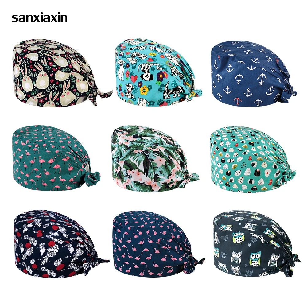 Шапка для медсестры с цветочным узором, регулируемая шапка с разным...