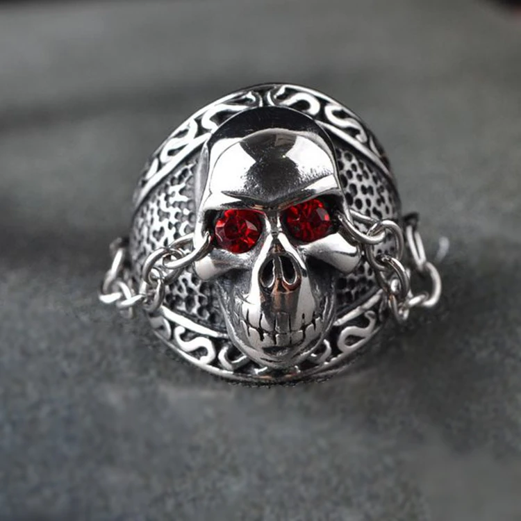 Классическое мужское кольцо в стиле панк с инкрустированными красны...
