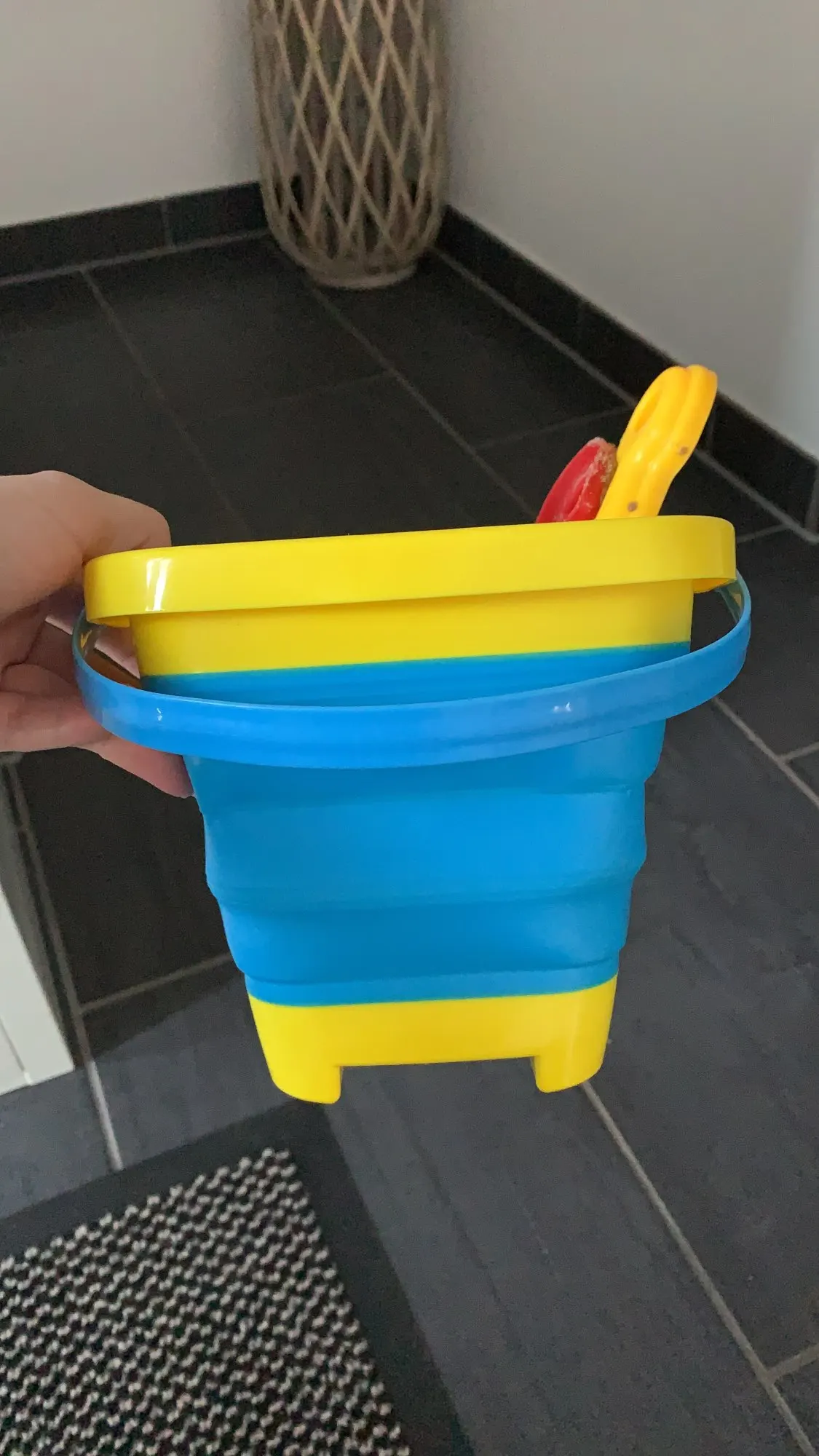 Как в описании. Хорошее ведро, но не много использовать для песочных замков, потому что стороны не плоские. В углах остались складки.