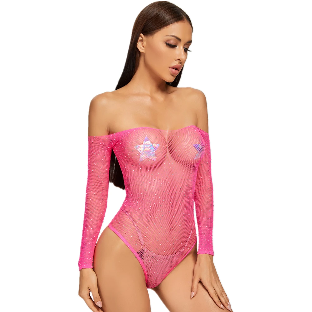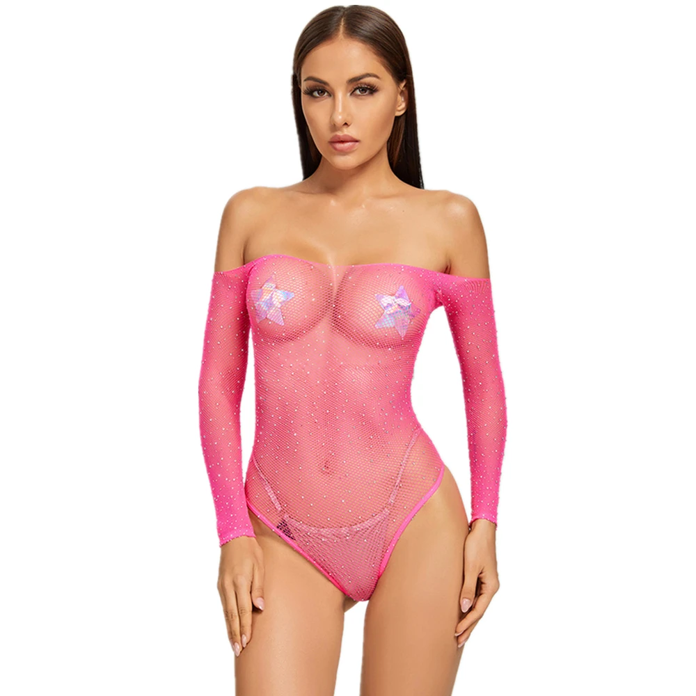 Боди женское Сетчатое прозрачное, с V-образным вырезом и бриллиантами