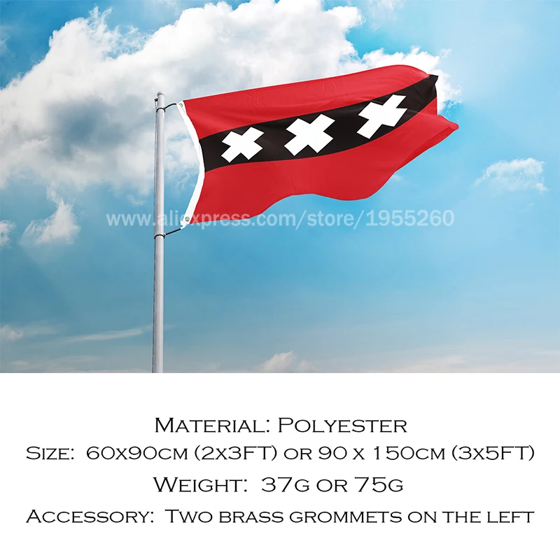 Флаг города Амстердам 3x5 футов, баннер из полиэстера, флаг под заказ 90x150 см, флаг для открытой местности Голландии, флаги Нидерландов, баннеры