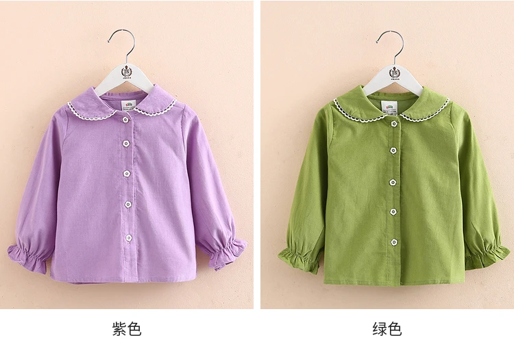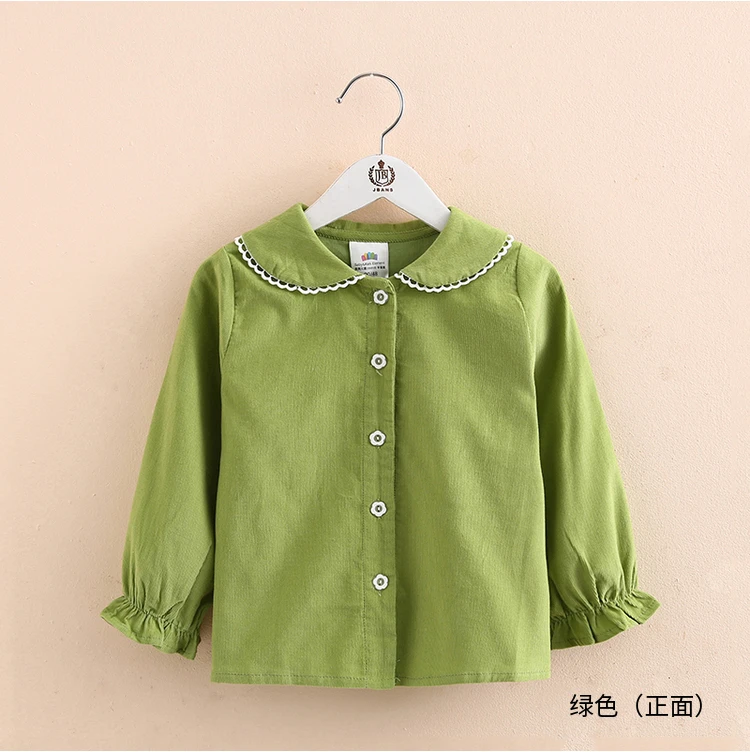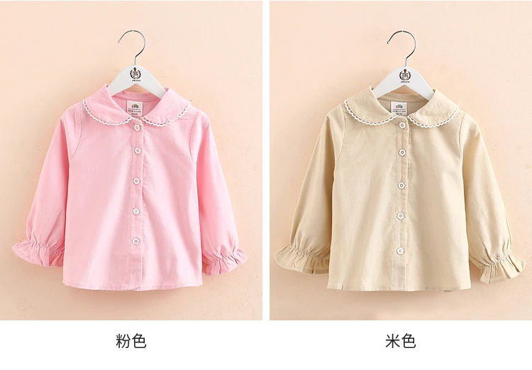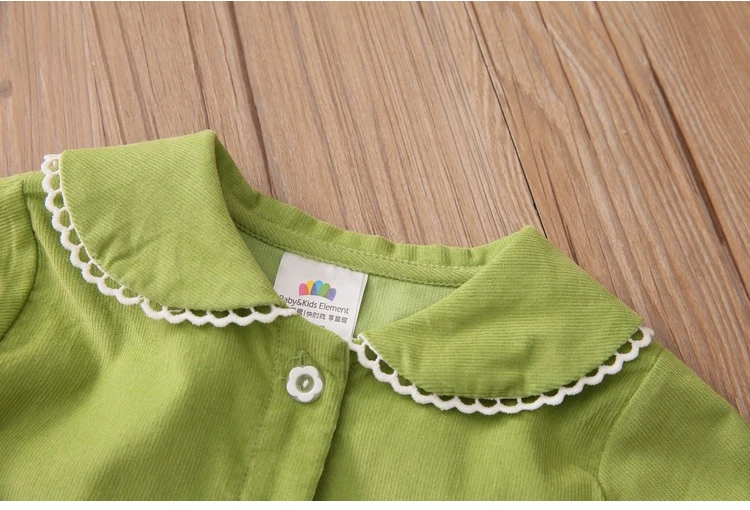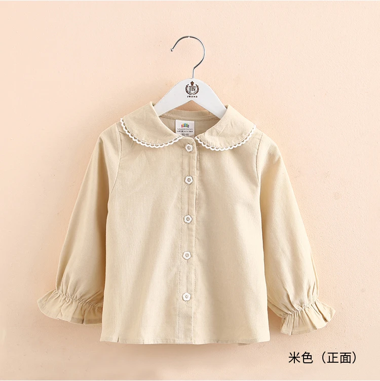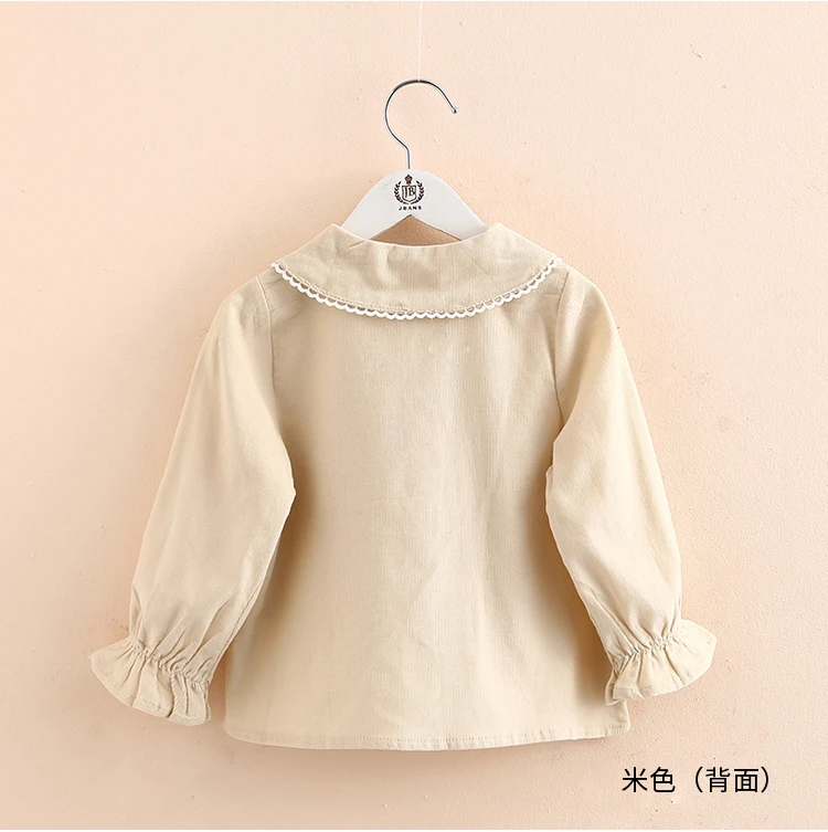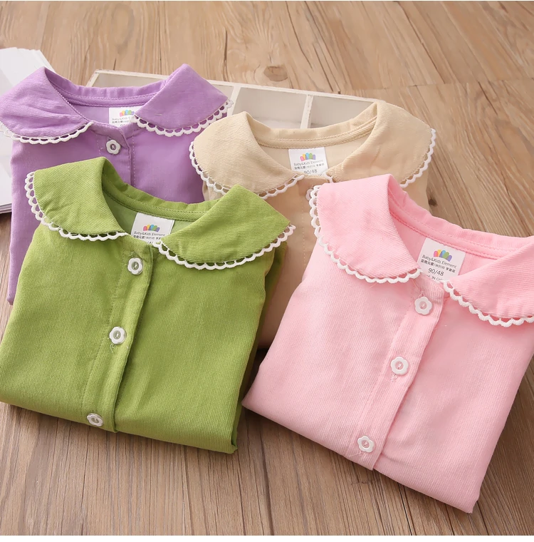 Детская рубашка с длинным рукавом, весна-осень 2021, модный Детский костюм, детская Вельветовая блузка с воротником-стойкой и кружевом для маленьких принцесс
