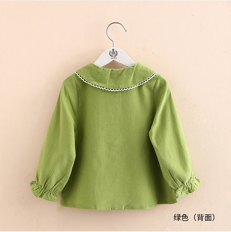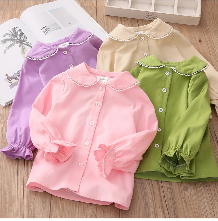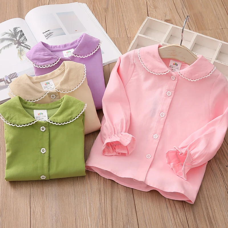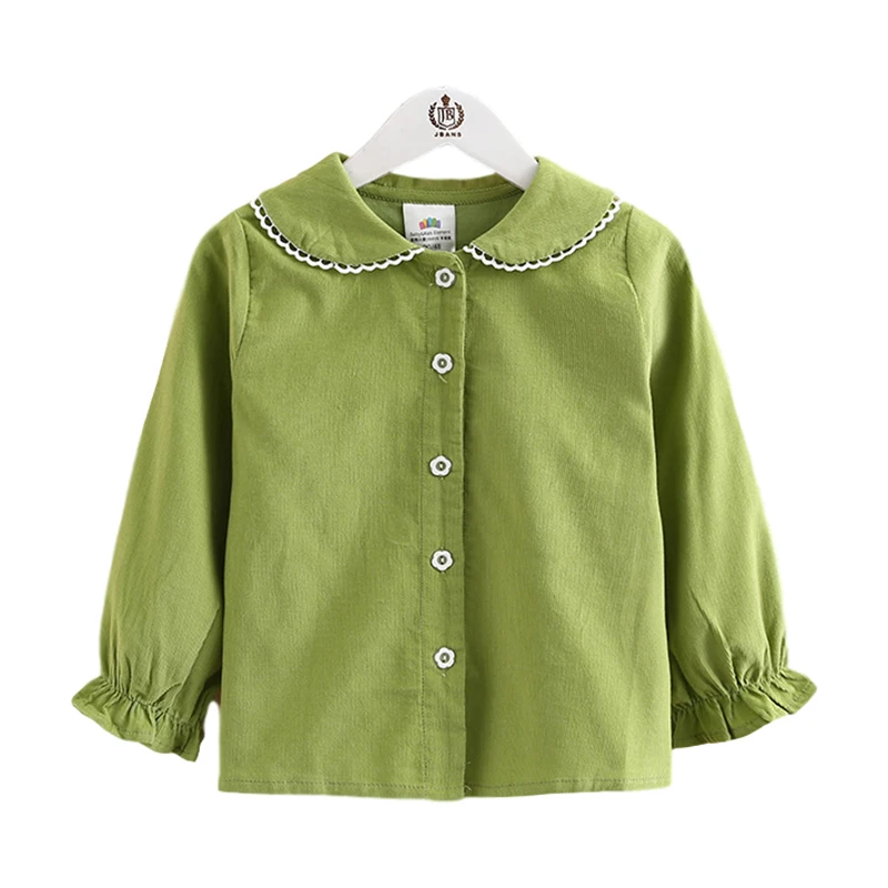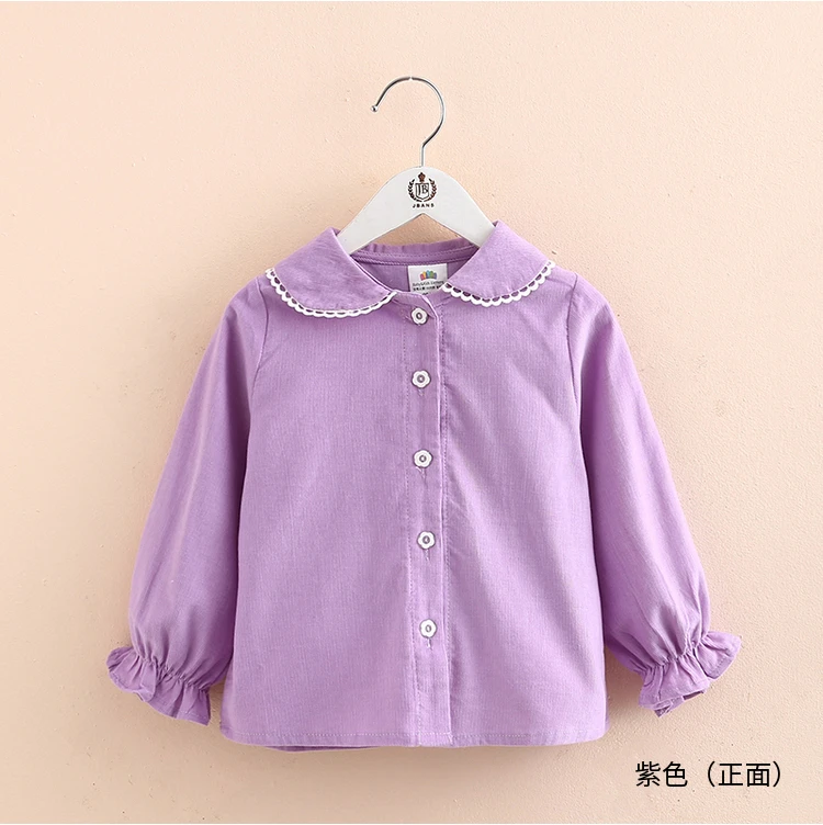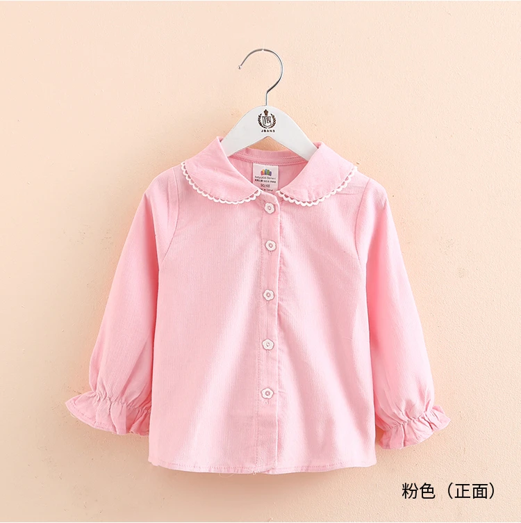 Детская рубашка с длинным рукавом, весна-осень 2021, модный Детский костюм, детская Вельветовая блузка с воротником-стойкой и кружевом для маленьких принцесс