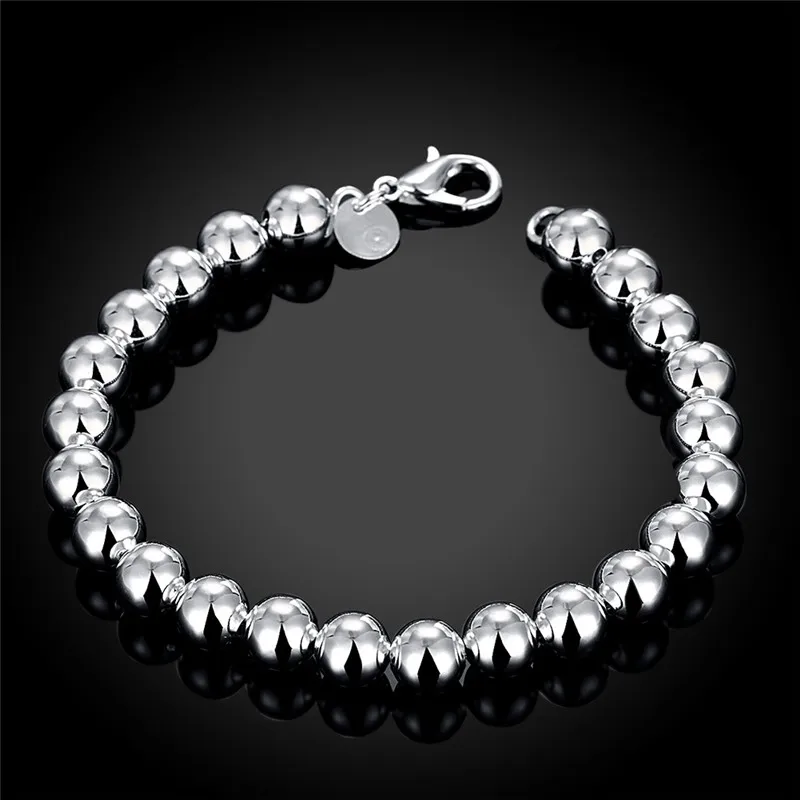 Изысканные 925 серебро 8 мм бусы браслеты из нержавеющей стали для ...