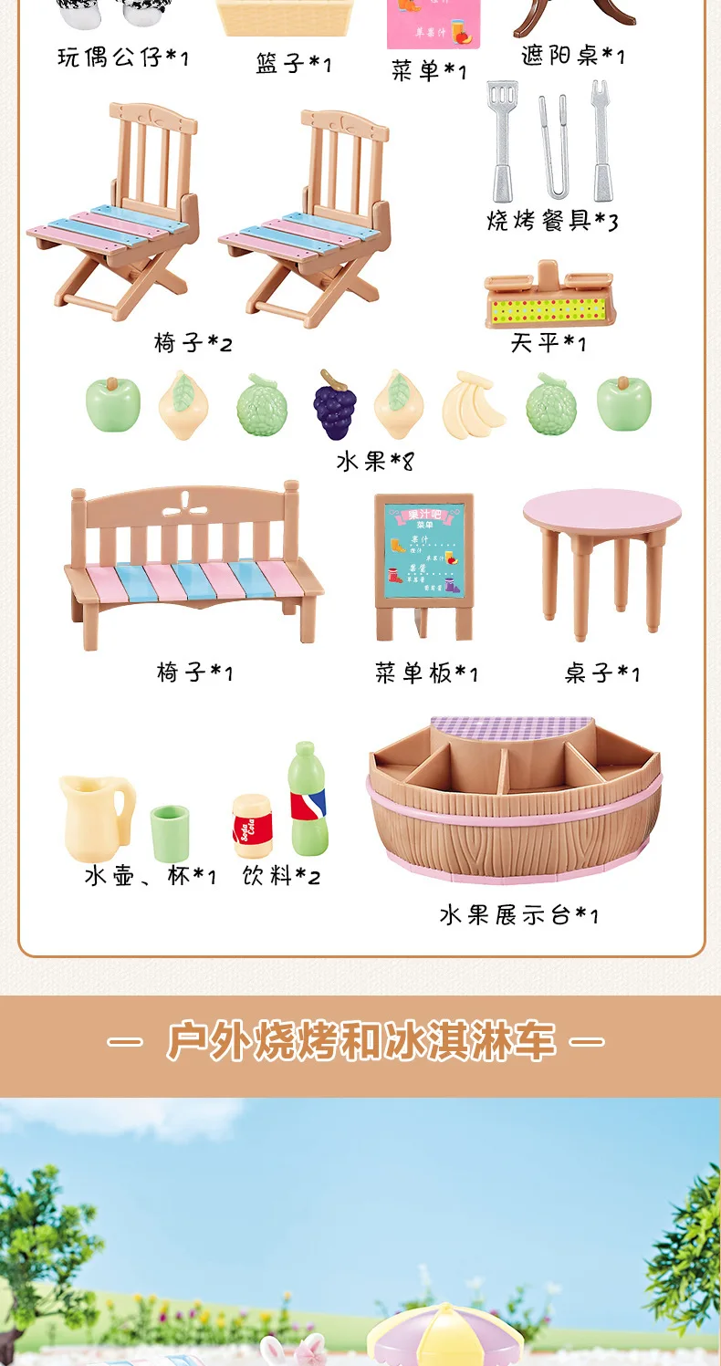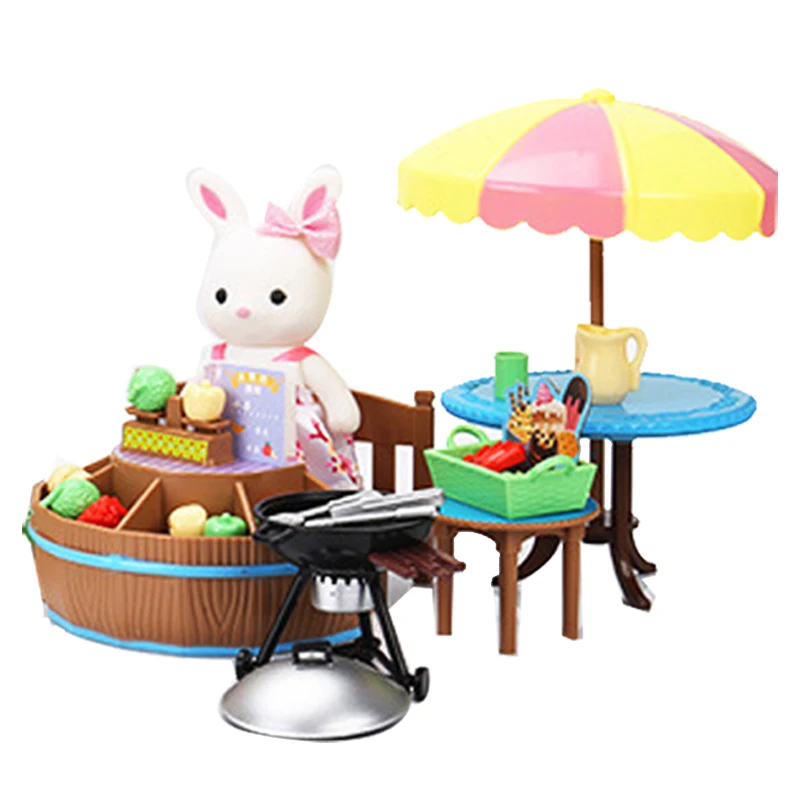 1:12 лесное животное семья кролик фрукты стойка мороженое корзина кукла и мебель девочка ролевая игрушка уличная барбекю сцена Игрушка
