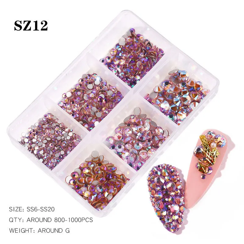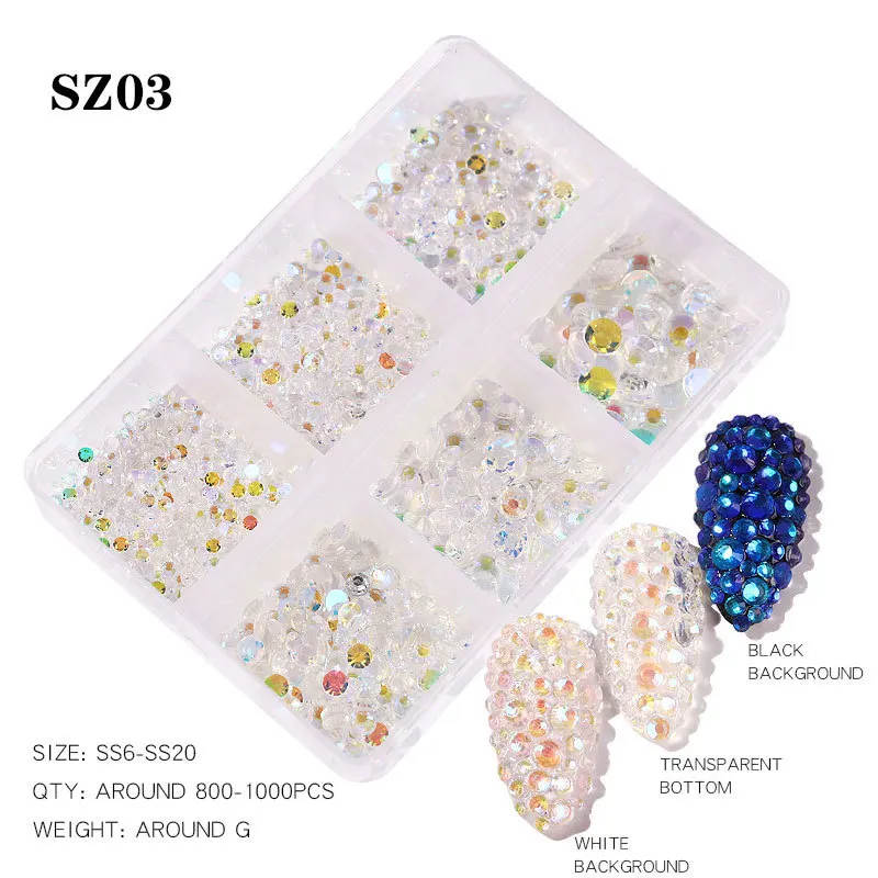 1 коробка многоразмерные Стразы для ногтей s 1000 шт 3D Кристальные...