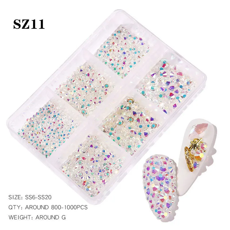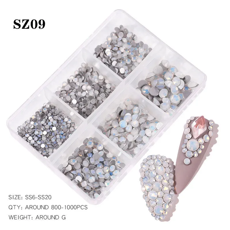 6 сетки с плоским дном Трава ногтей Стразы SS6-SS20 микс опал AB Цв...