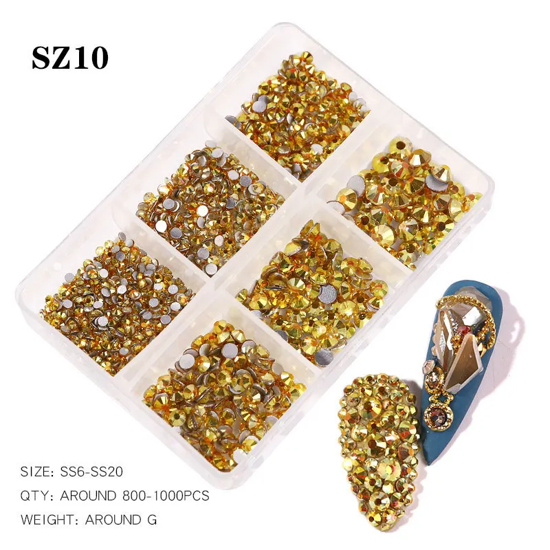 1 коробка, стразы с кристаллами для дизайна ногтей, золотистые, сер...