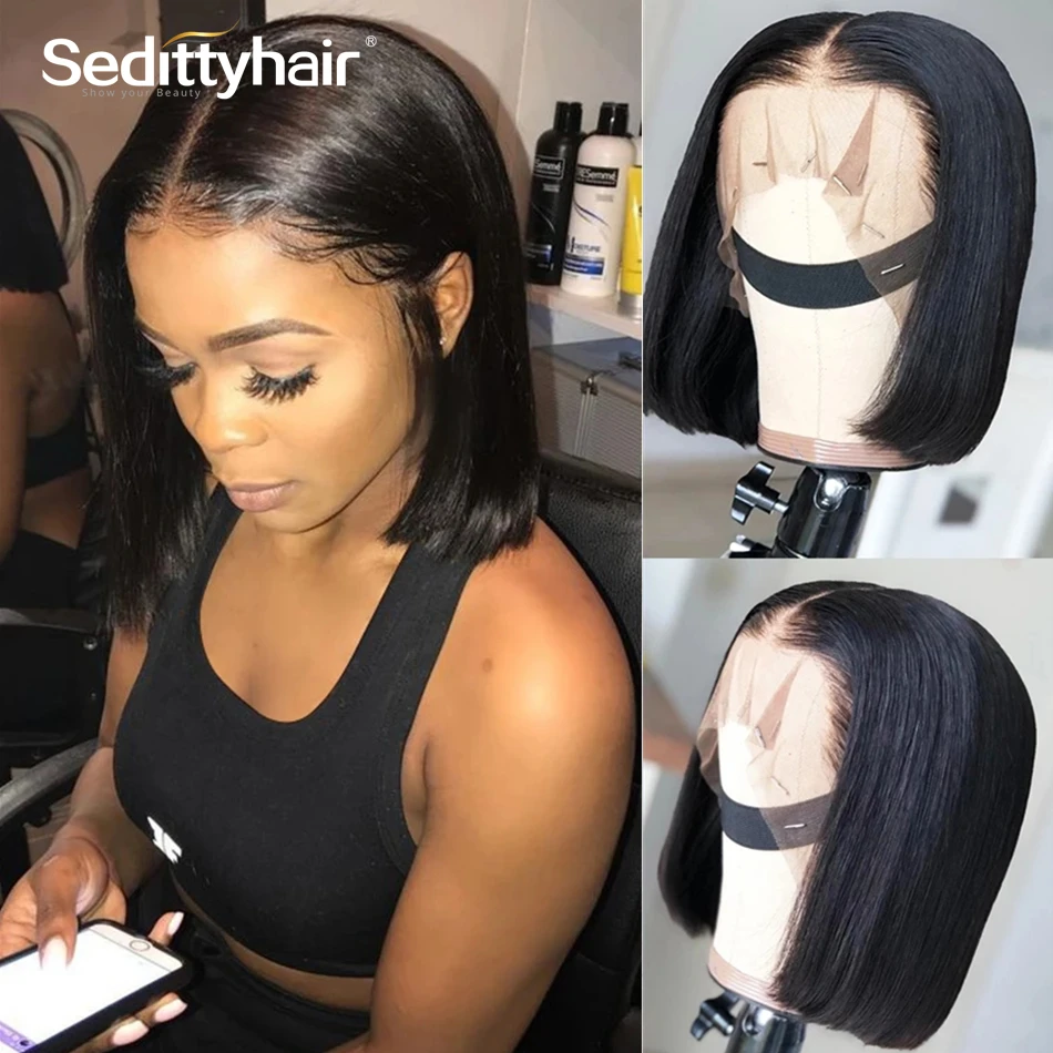 13x4 прямой парик Боб, парик из человеческих волос на сетке спереди, предварительно выщипанные Детские волосы, бразильские волосы Реми, фронтальные короткие волосы, парик Боб, черные женщины