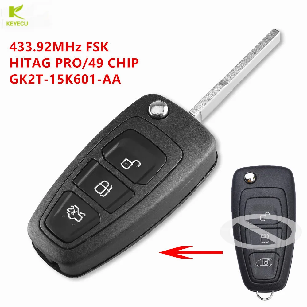 Пульт дистанционного управления KEYECU, 433,92 МГц, с чипом ID49 для Ford Transit 2016, 2017, 2018, 2019, 2020, GK2T-15K601-AA