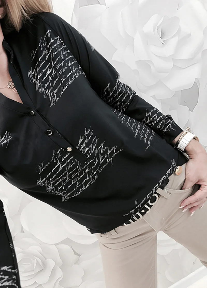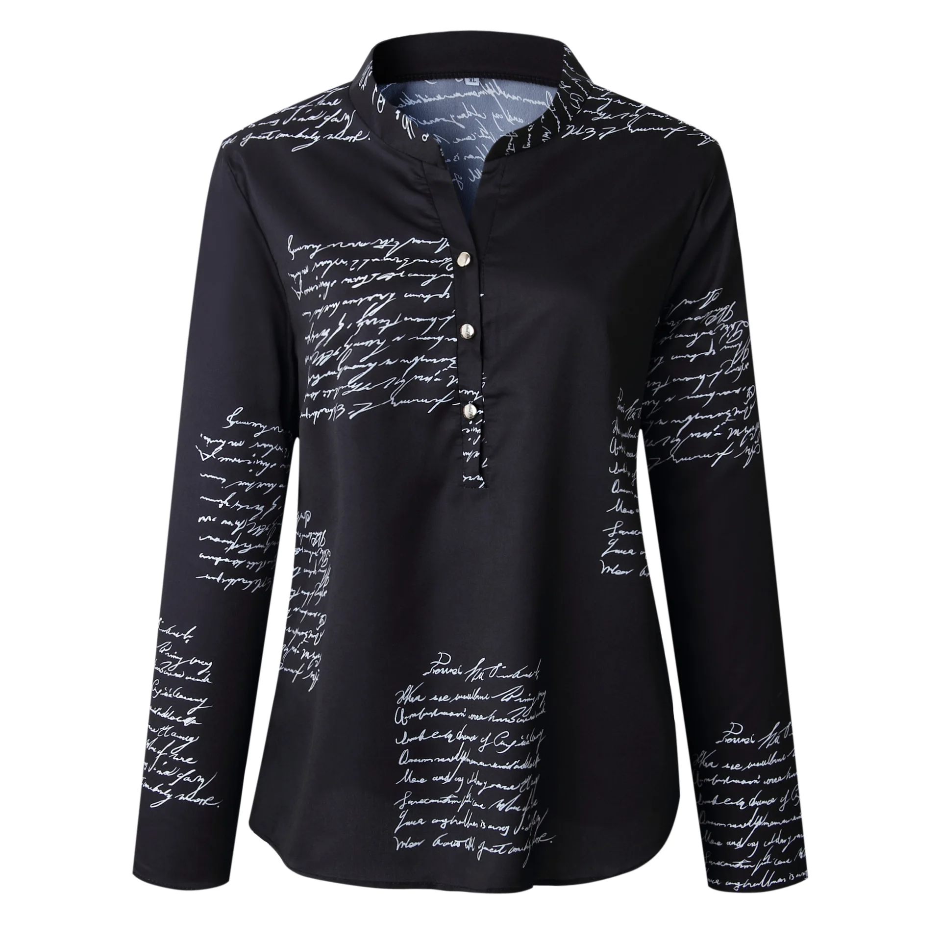 Женская блузка, белая, черная, с буквенным принтом, на пуговицах, v...