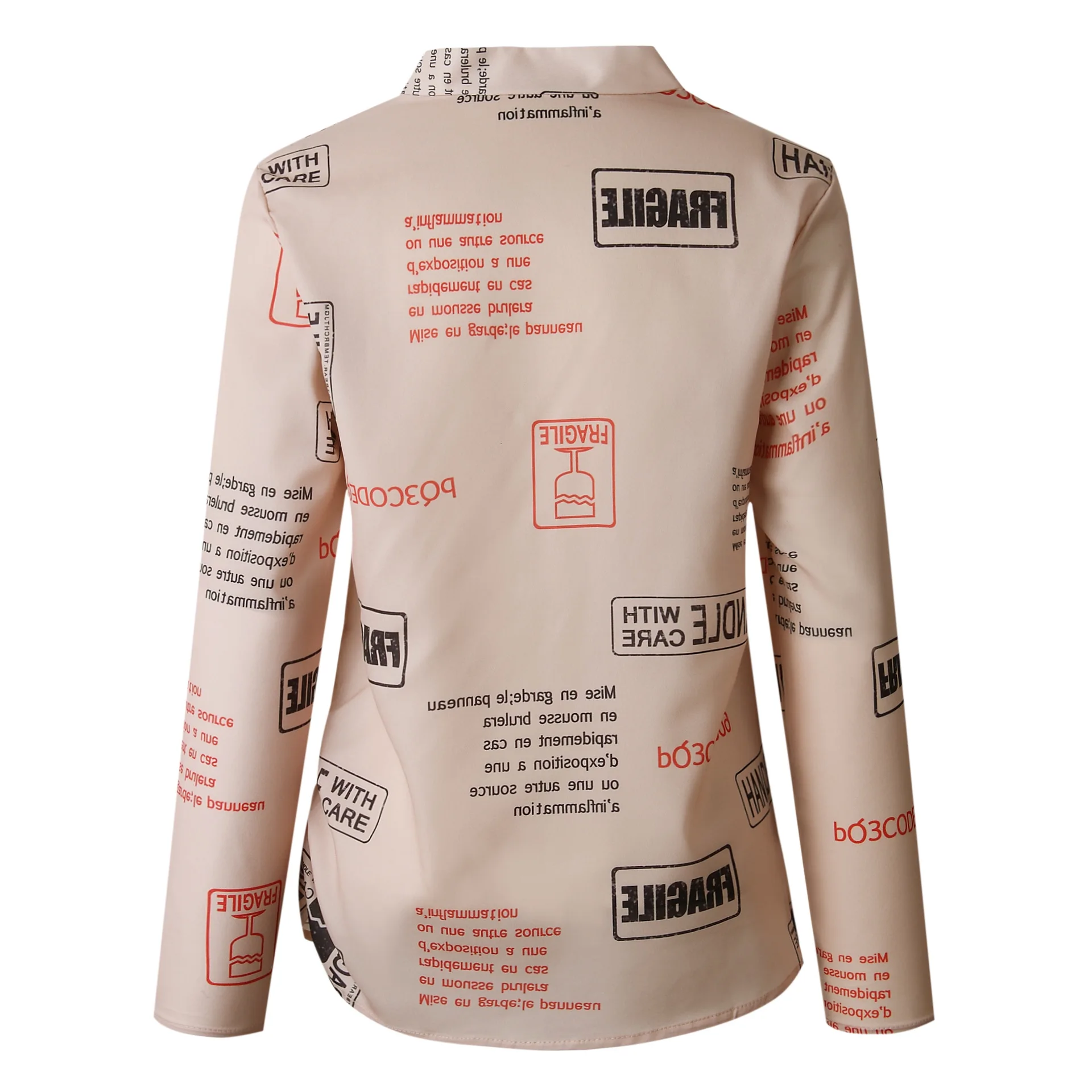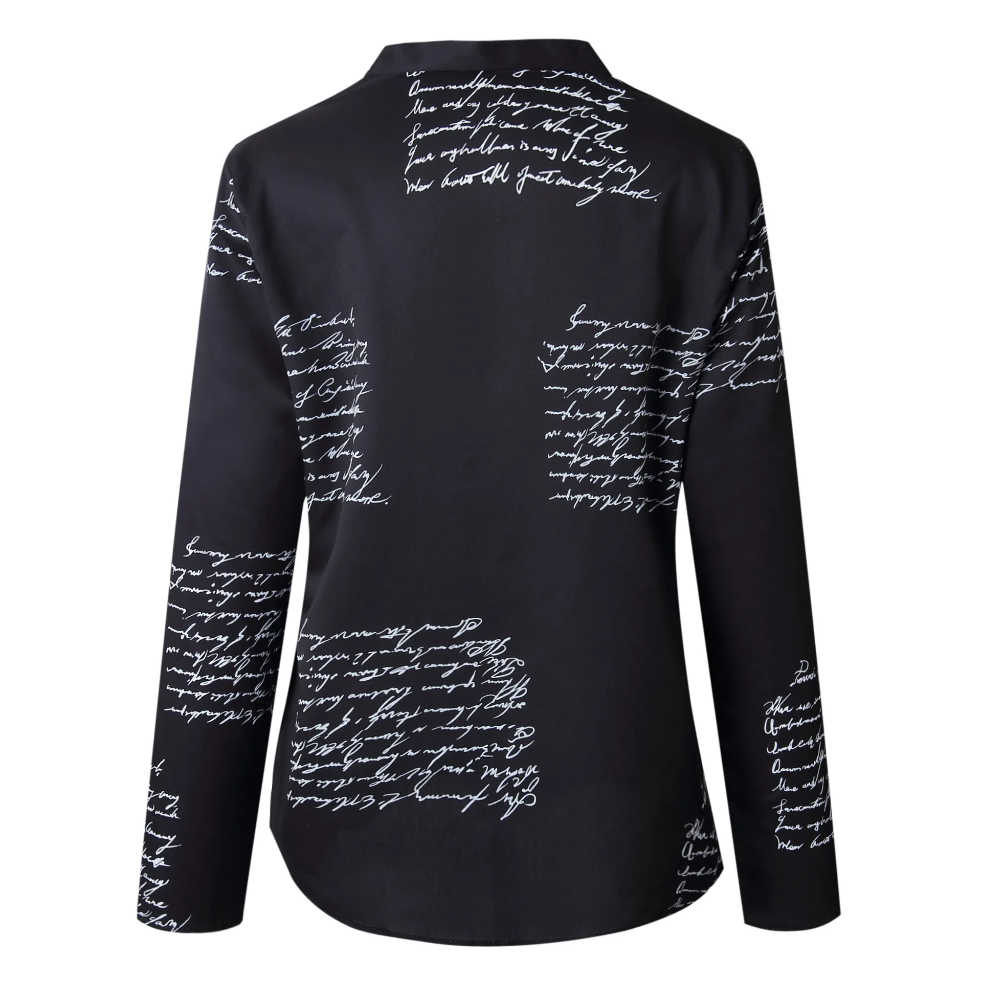 Женская шифоновая блузка, рубашка с длинным рукавом и надписью, для офиса, весна-лето