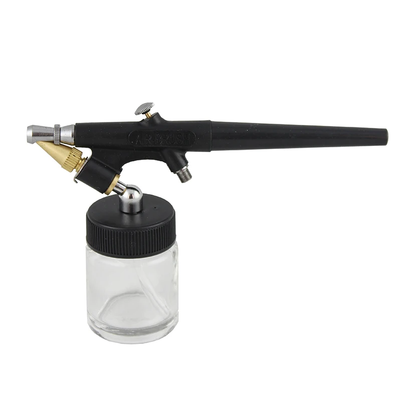 Спецификация (AC004): Аэрограф Двойного Действия Тип подачи: Гравитация Сопло: диаметр 0,30 мм Емкость чашки: 7CC Рабочее давление: 15-50PSI Спецификация (AC071): Аэрограф с одним действием Шаблон распыления Настраивается от 1/4 "до 1-1/2" для максимальной универсальности. Включает в себя Аэрограф с тонкой головкой, 5 футов. Виниловый шланг, с крышкой прикрепить 3/4 унции. Банка, регулятор хода и адаптер (1/4 "воздушный шланг от компрессора до меньшего шланга аэрограф.) Рабочее давление: 15-50 PSI Диаметр сопла: 0,8 мм Емкость чашки фиксации: 22cc * 2 Тип подачи: нижняя подача