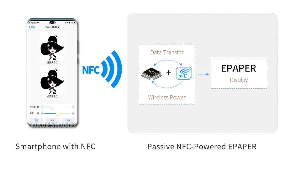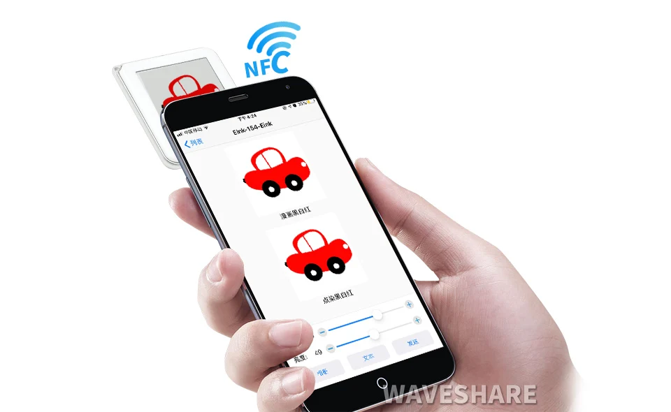 Чтобы обновить содержимое дисплея, используйте смартфон с функцией NFC или считыватель NFC, близкий к электронной бумаге, это будет сделано через несколько секунд