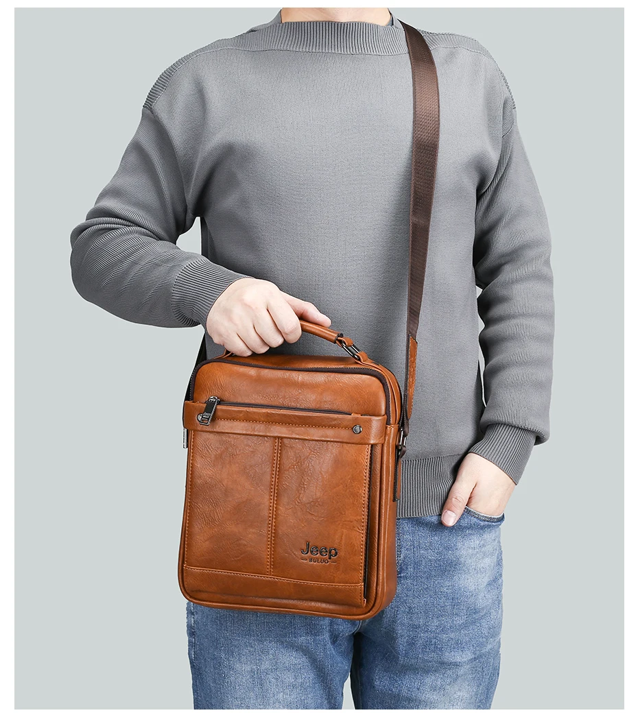 Мужская брендовая деловая сумка JEEP BULUO, оранжевая однолямочная сумка для iPad 9,7 дюйма, кожаная сумка-мессенджер через плечо, все сезоны,