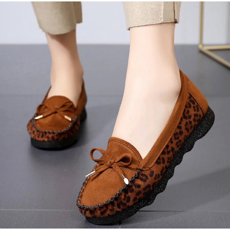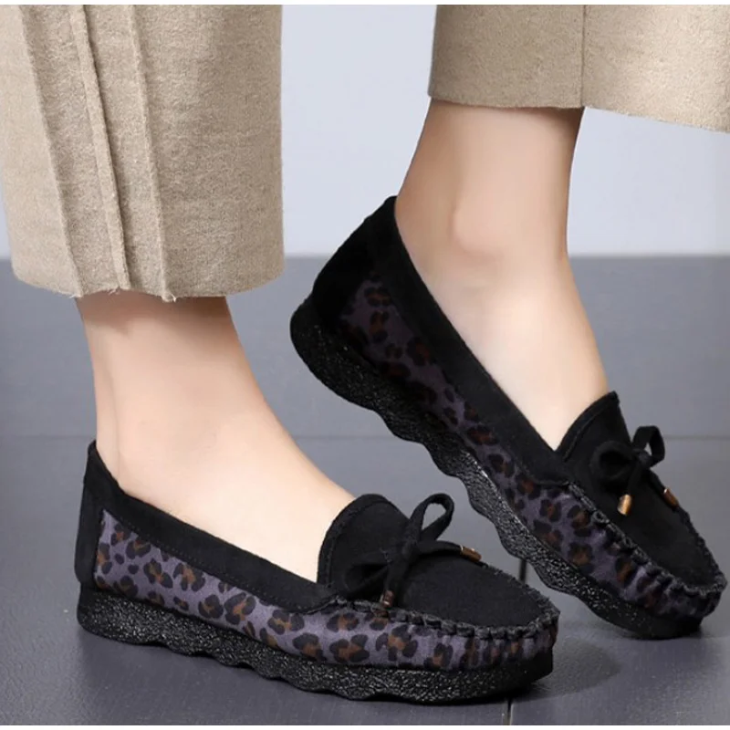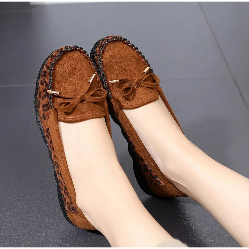 Женские мокасины, туфли с бантом на плоской подошве, обувь для мам с мягкой подошвой, повседневные леопардовые тонкие туфли без шнуровки, женские лоферы с вышивкой, весна 2021