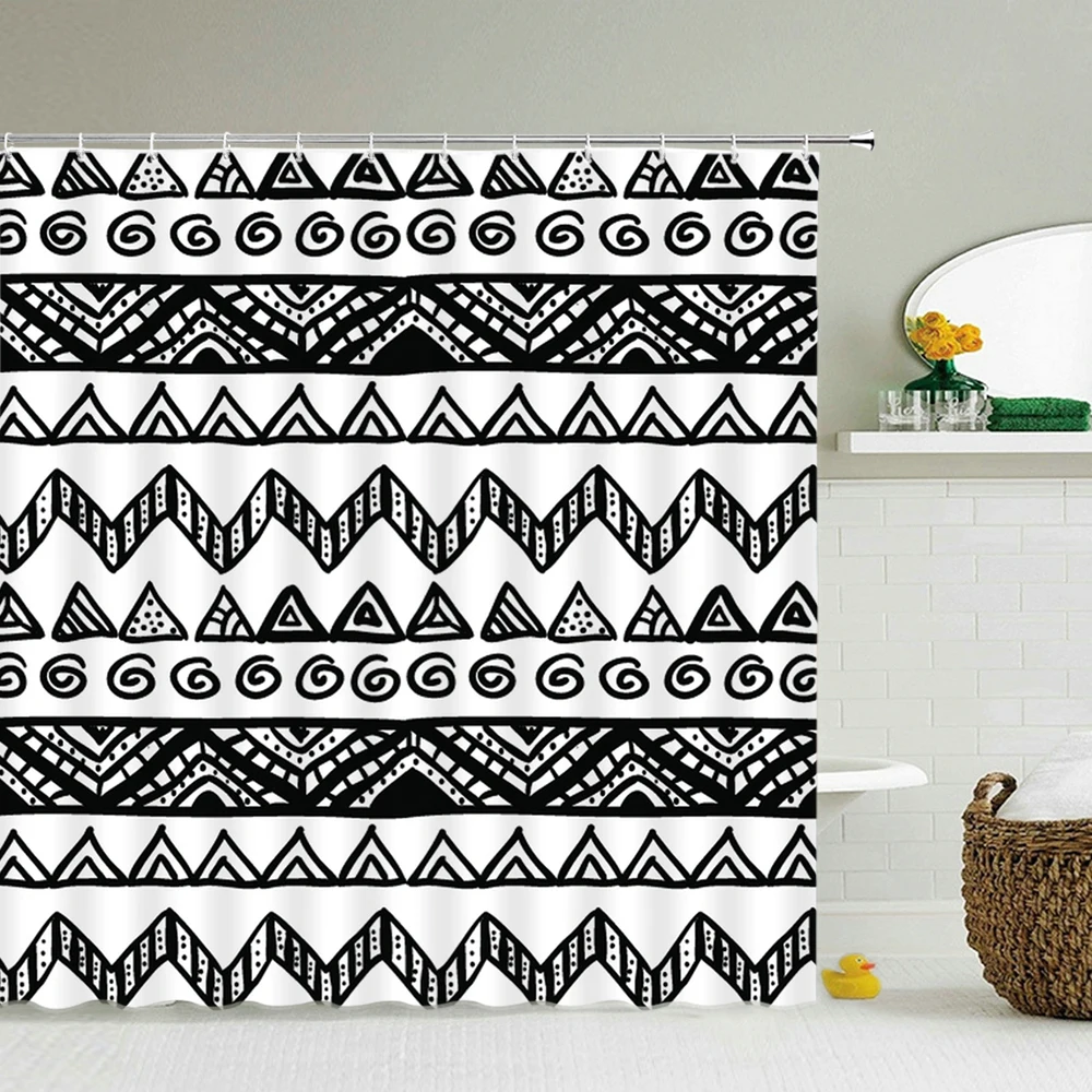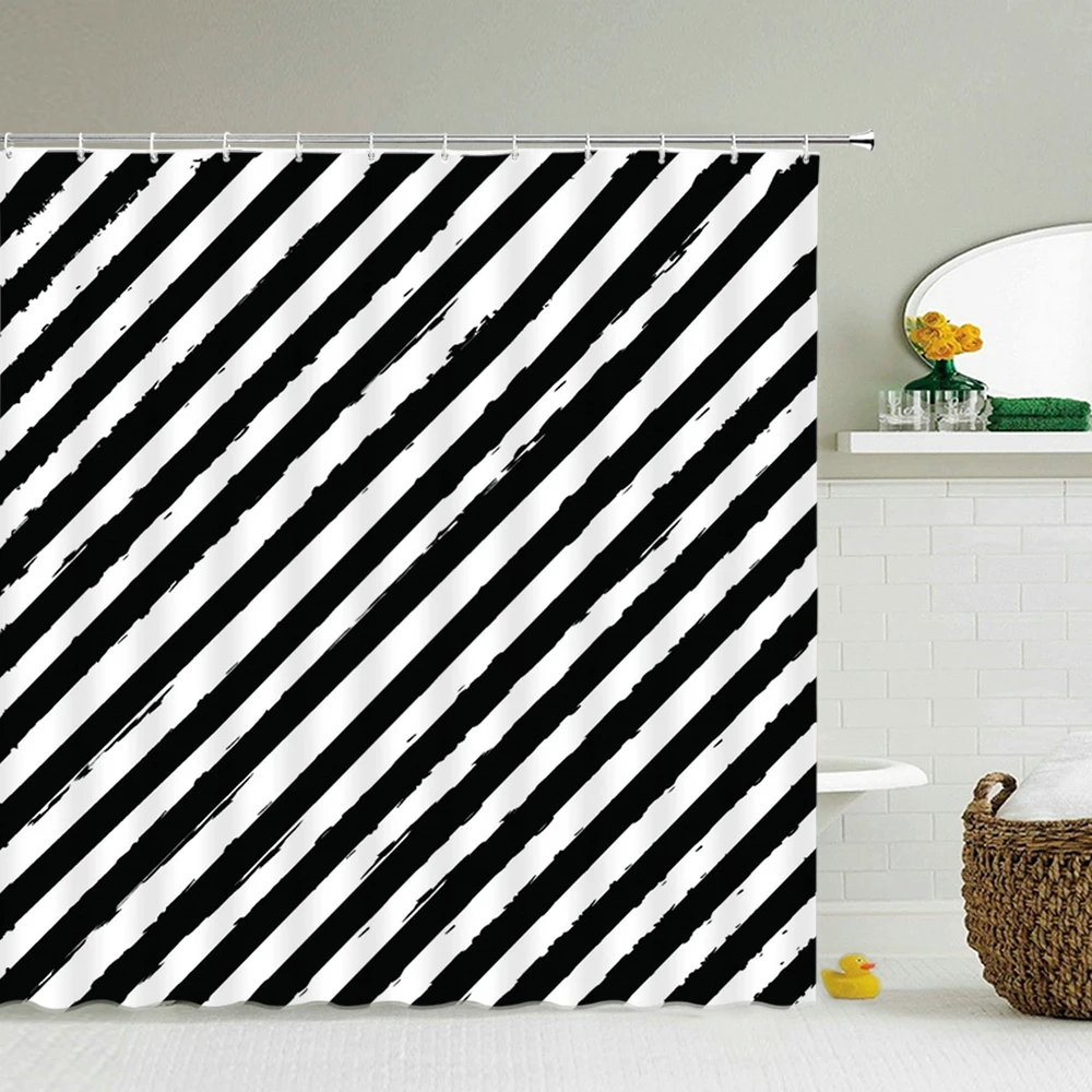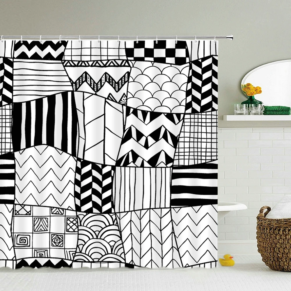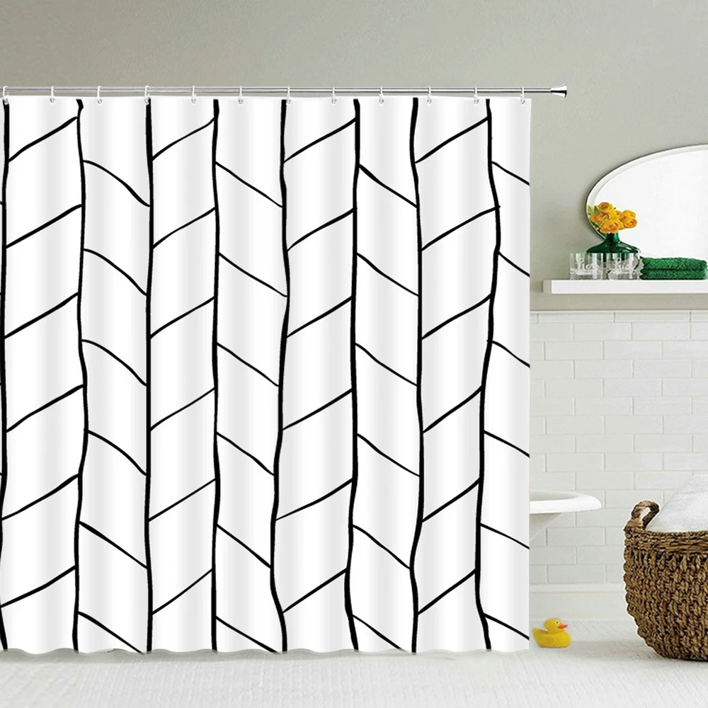 Водонепроницаемые тканевые занавески для душа, современные украшения в геометрическом стиле, занавеска для ванной комнаты, черная белая занавеска для купания с 3D рисунком