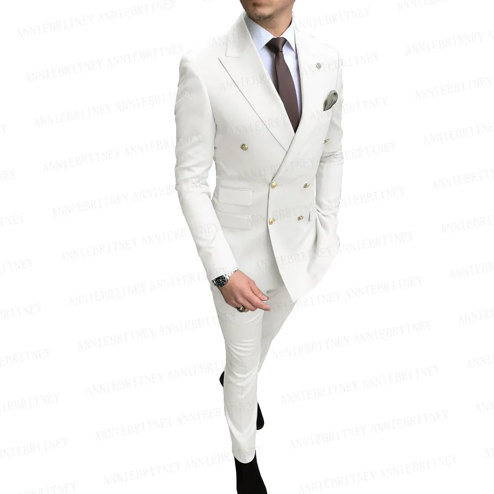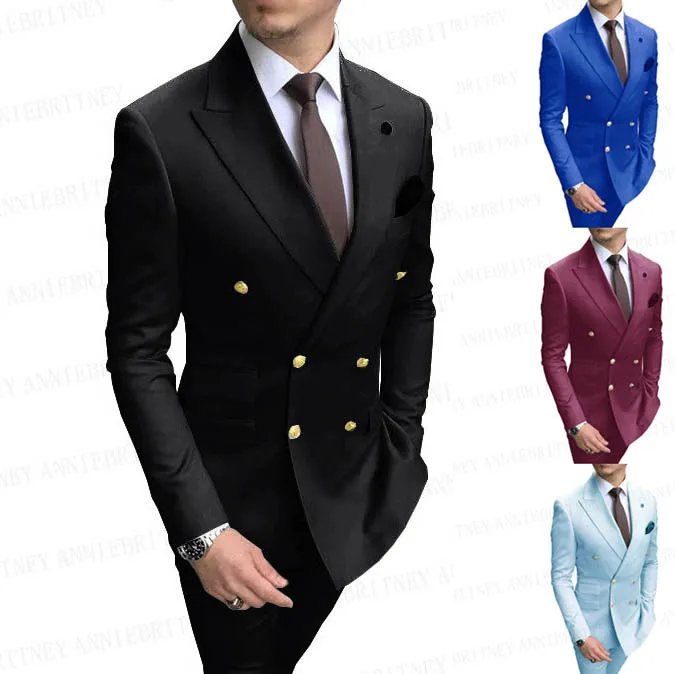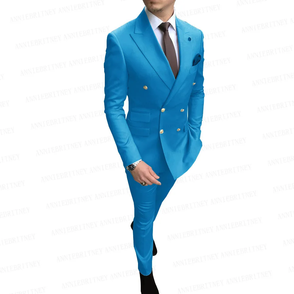 Мужской костюм из двух предметов, облегающий костюм с золотыми пуговицами, свадебный смокинг для жениха, классический двубортный пиджак, брюки