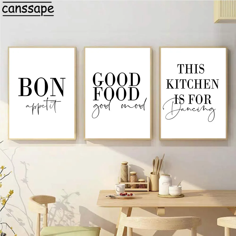 Хорошая Еда приятного аппетита цитаты настенный художественный принт черно-белый минималистское полотно Nordic плакат картина Кухня домашний декор