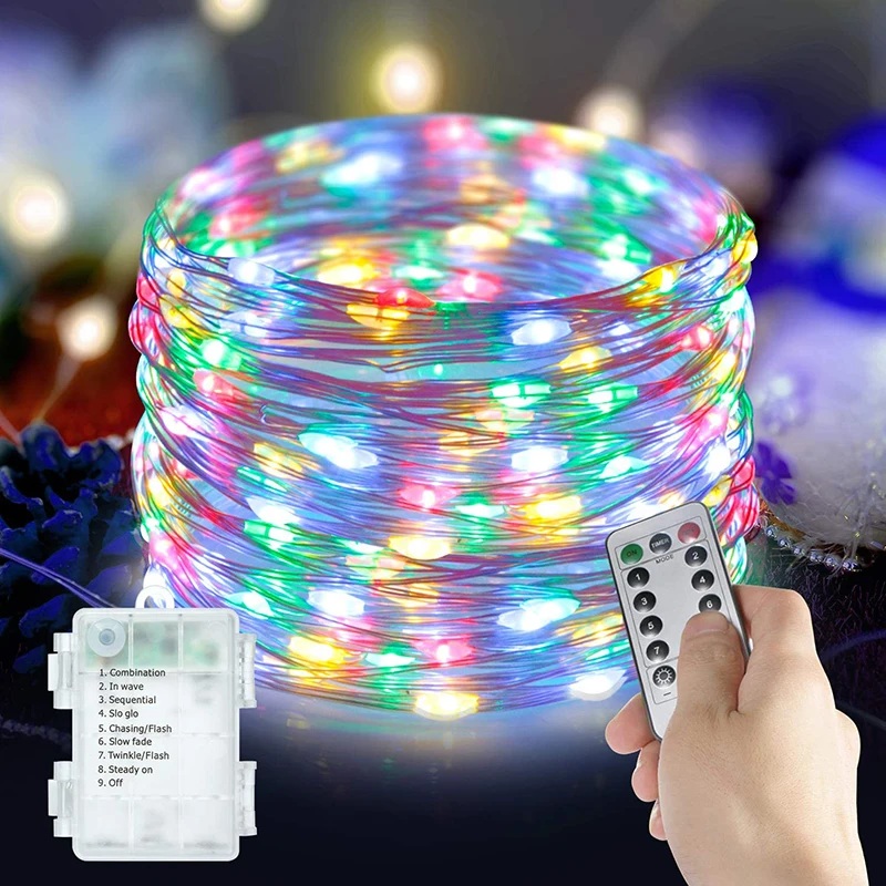 Водонепроницаемая гибкая гирлянда с дистанционным управлением, 10 м, 100 светодиодов, 5 м, 50 светодиодов, работает от батарейки для спальни, дома, свадьбы, Рождественского фестиваля