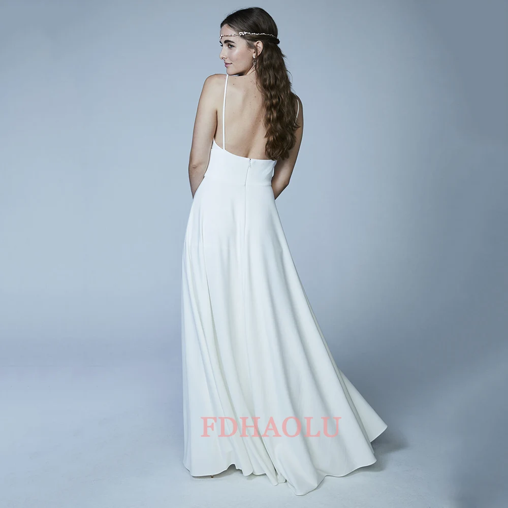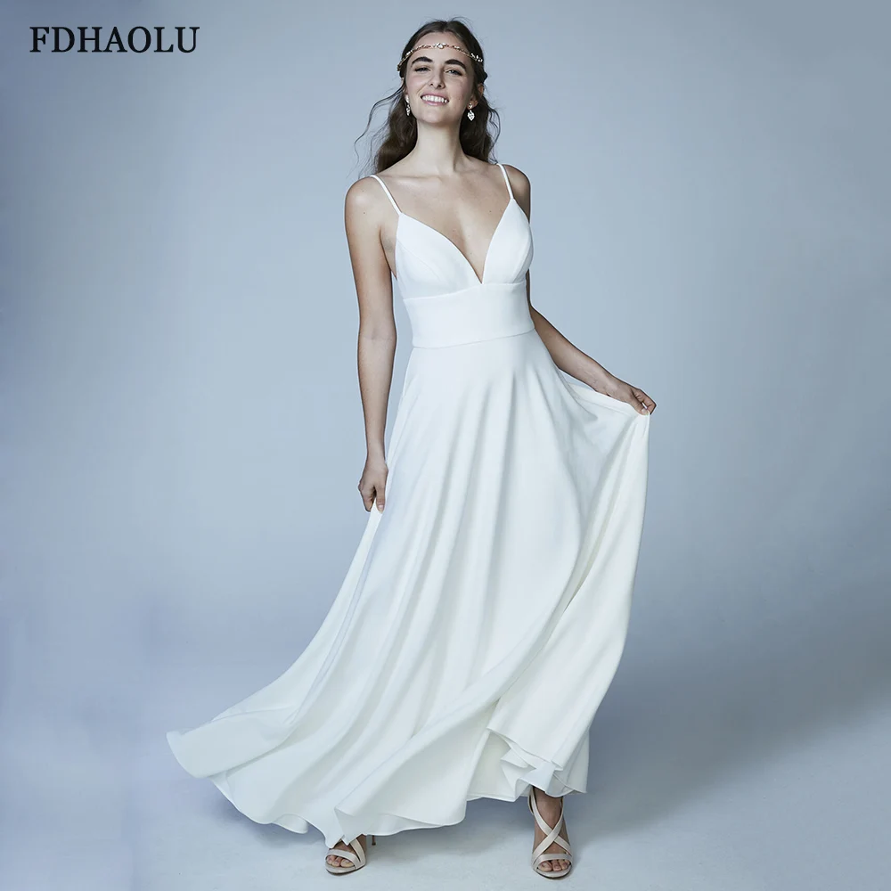 FDHAOLU FU50 Белый сатин свадебные платья в пол с v-образным вырезом, Длина без бретелек свадебное платье индивидуальный заказ Vestido De Novia