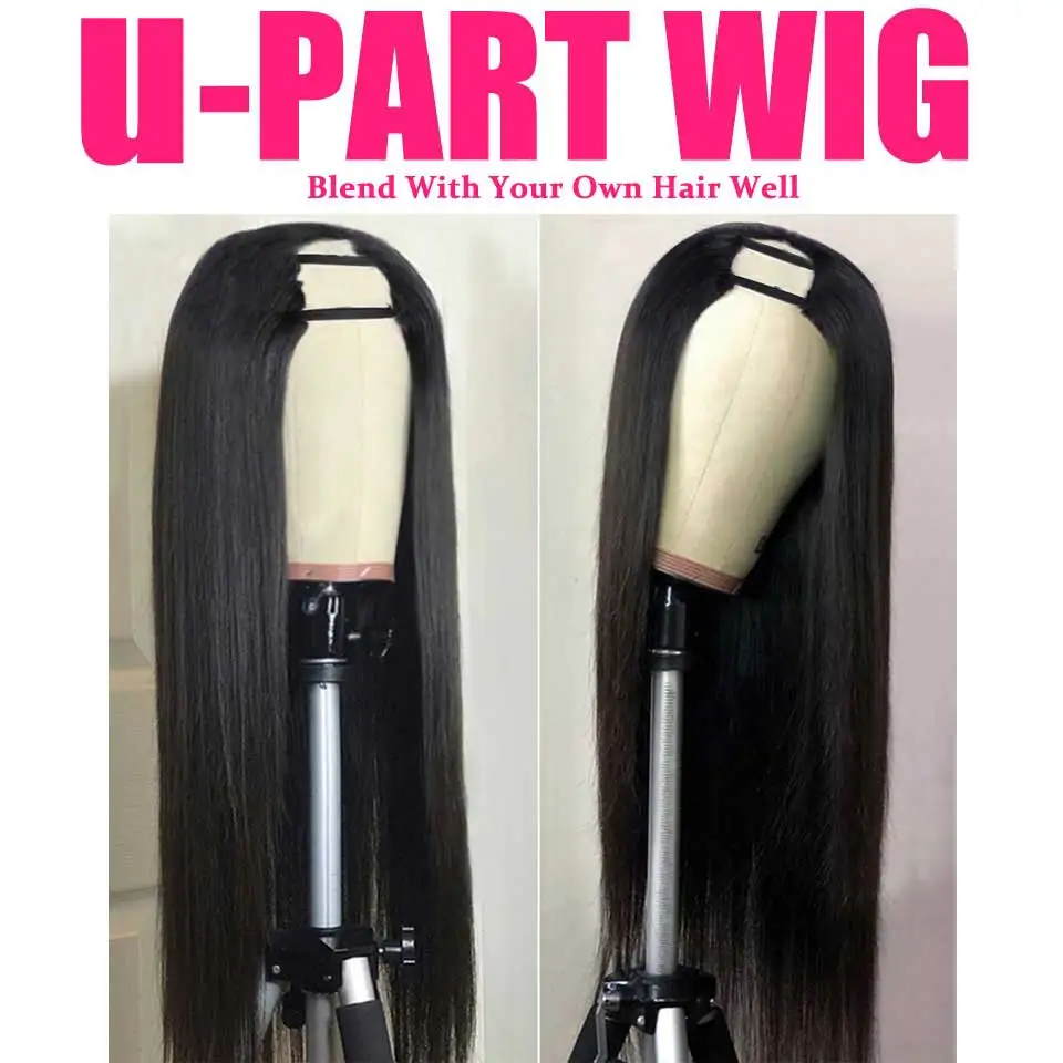 Современный танец шоу 28 30 дюймов прямые человеческие волосы U части парики перуанские фабричного производства U Форма парик 150% плотность Реми человеческие волосы парики для чернокожих Для женщин