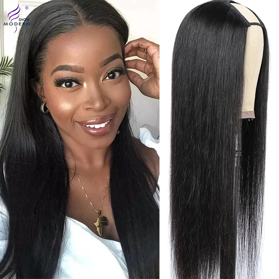 Современное шоу 28 30 дюймов прямые u-части парики перуанские машины u-части парик 150% плотность Remy человеческие волосы парики для черных женщин