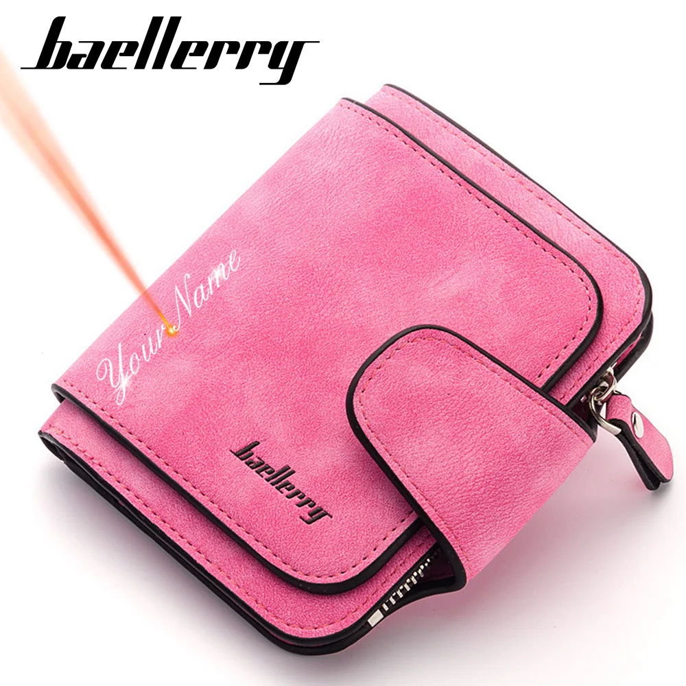 Кошелек женский с гравировкой имени, модный короткий бумажник из искусственной кожи, кредитница, классический кошелек на молнии, 2021