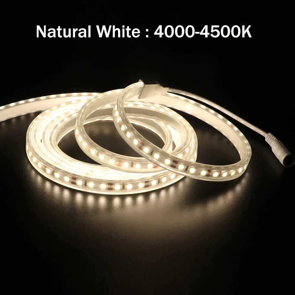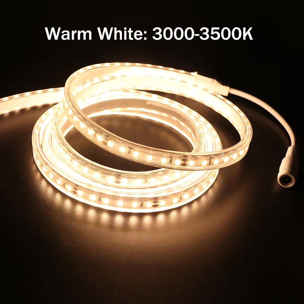 Светодиодная лента 2835, 12 В, 24 В, гибкая ленточная, IP67, водонепроницаемая, 120 светодиодов, струнная лампа с разъемом постоянного тока, теплый, натуральный белый, 4000K