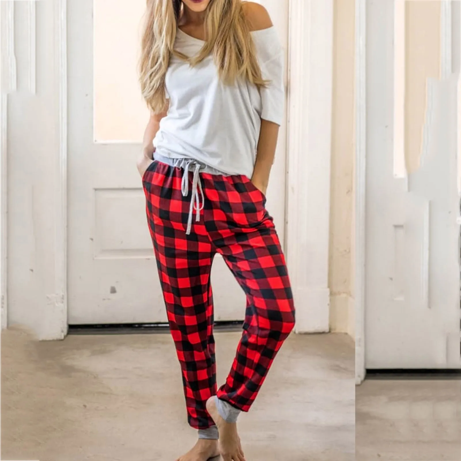 Осенняя женская пижама для сна, пижама женская в клетку, Рождественский домашний костюм для женщин, Повседневная пижама, штаны, пижама femenino