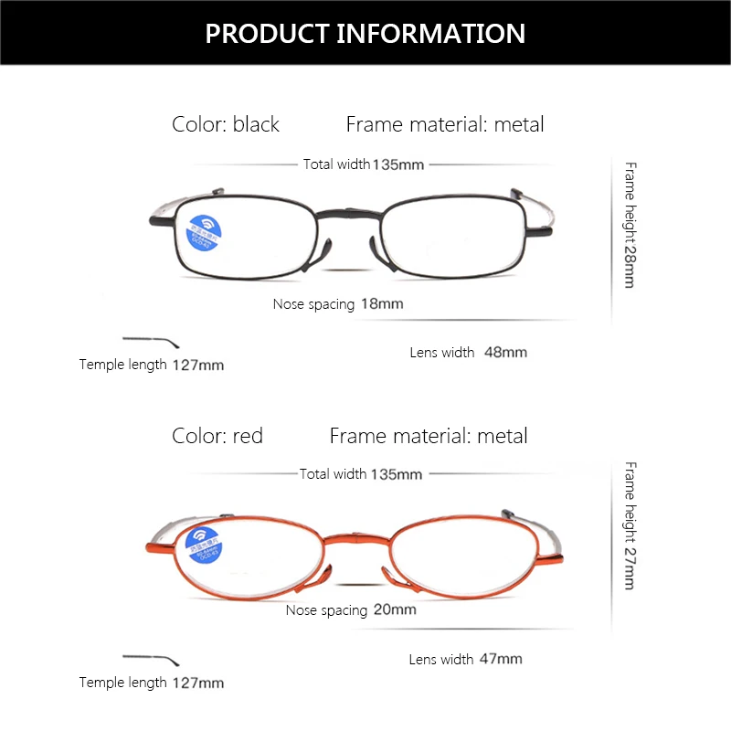 Популярные модные дизайнерские мини-очки для чтения для мужчин и женщин, складные маленькие очки в оправе, черные металлические очки с оригинальной портативной коробкой