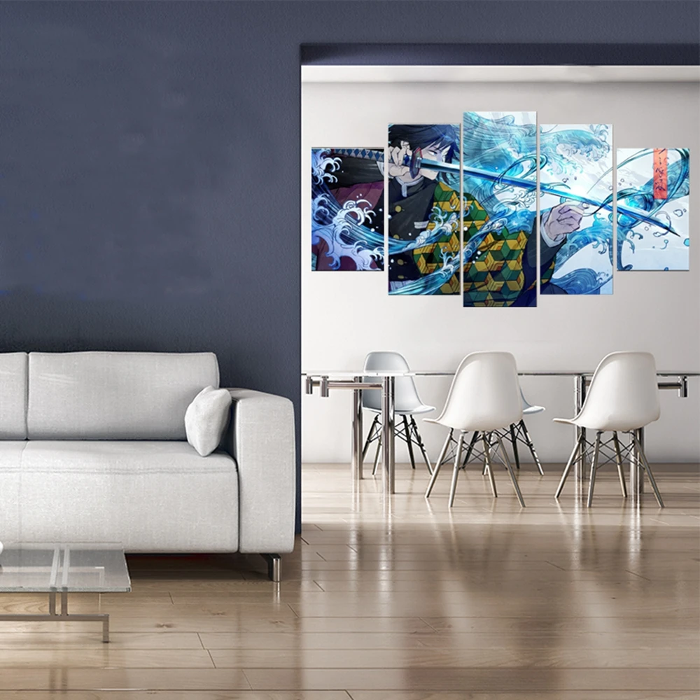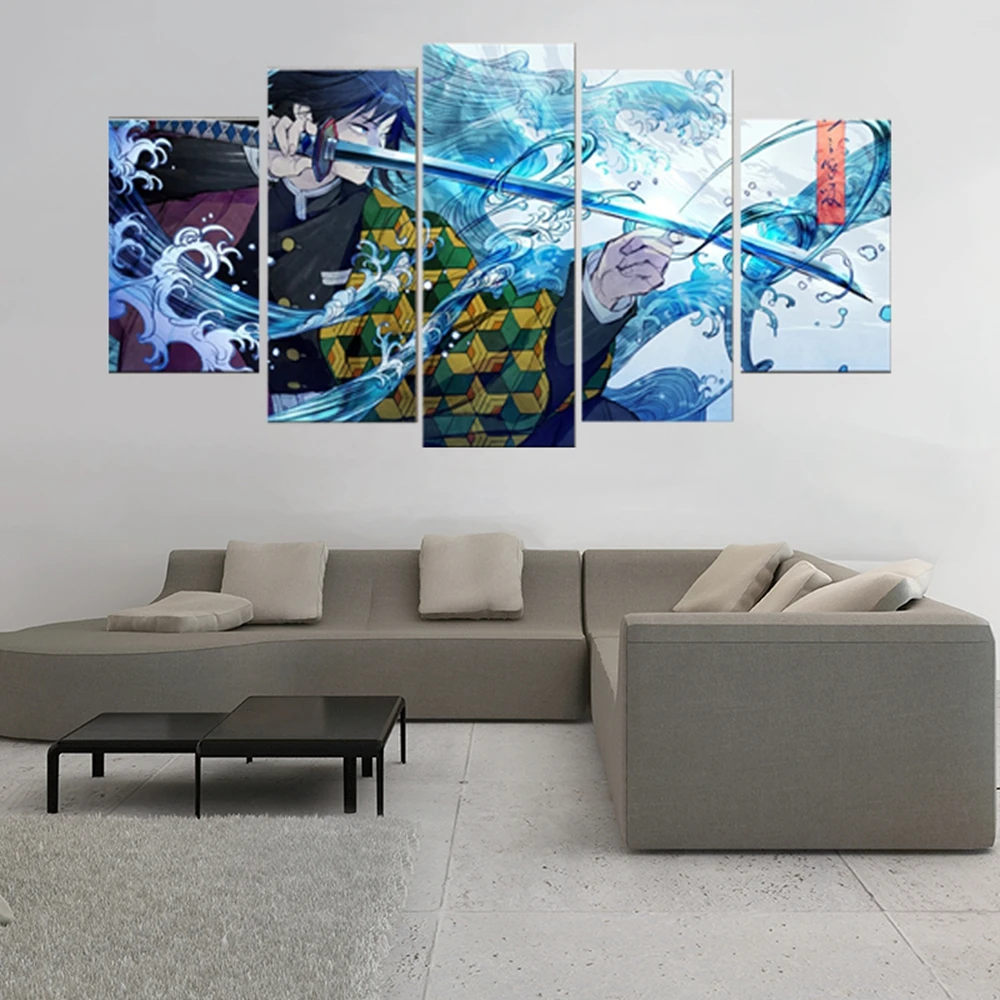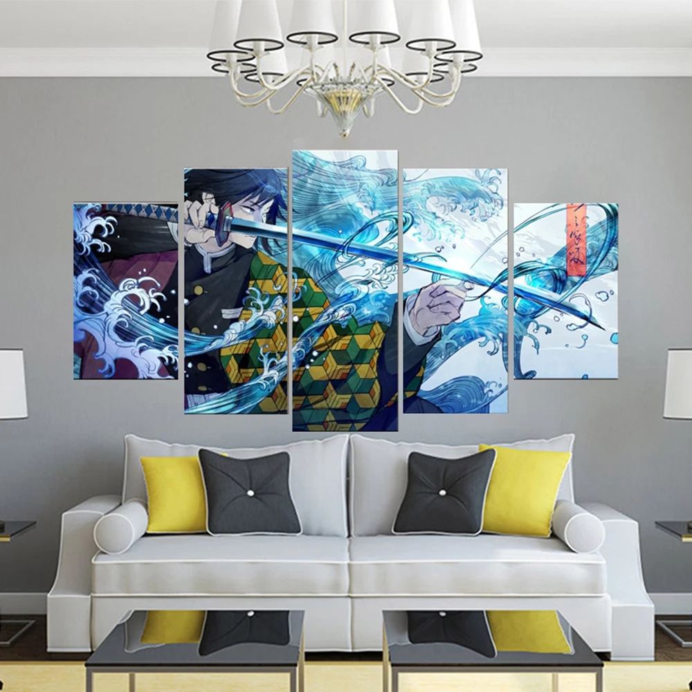 5 панелей HD Аниме Картина для мальчика киметасу No Yaiba Tomioka Giyuu постер для рассеивания демонов анимационное искусство настенные декоративные картины