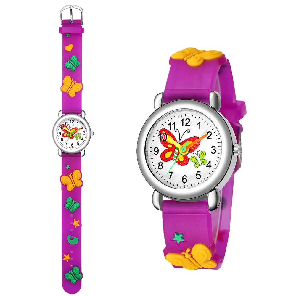 Часы Детские Водонепроницаемые с силиконовым ремешком, кварцевые аналоговые с 3D рисунком бабочки, для девушек и студентов, подарок
