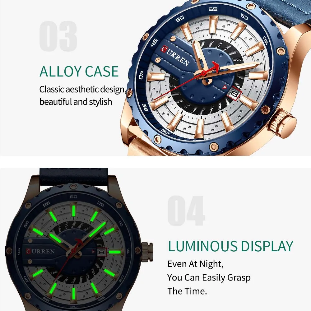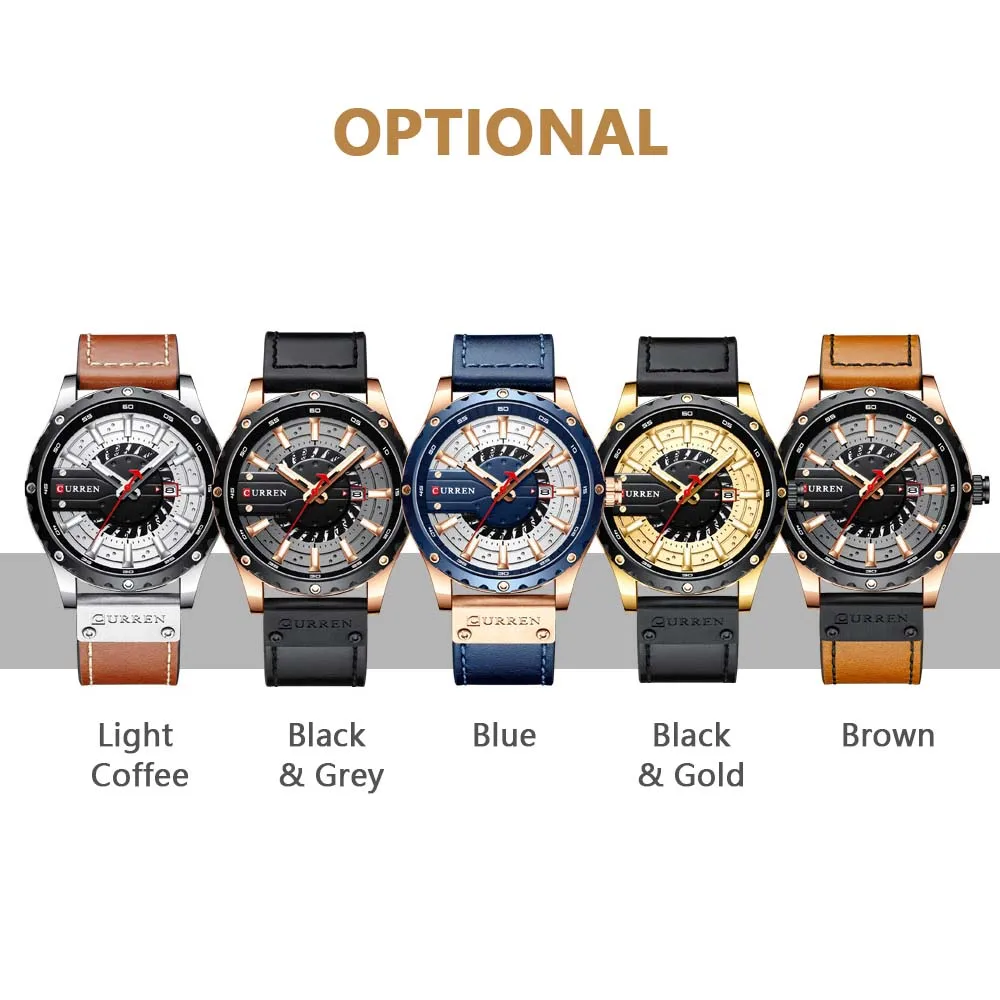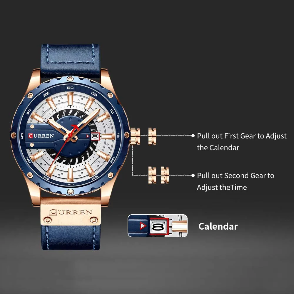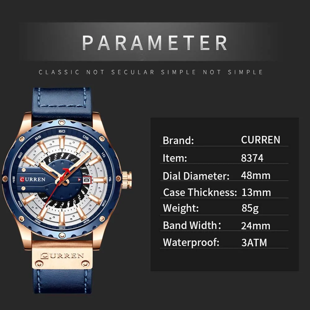 Это модные часы, предназначенные для мужчин. Хорошо изготовлены с кожаным ремешком, кварцевым механизмом и изысканным циферблатом. Отличный подарок! Особенности: Модные мужские часы, сочетание традиций и инноваций. Кварцевый механизм обеспечивает точное Отображение времени. Зеркало из минерального стекла, устойчивое к царапинам и износу. Изысканный циферблат, светящийся дизайн ночью. Отображение календаря и времени. Прочный кожаный ремешок для часов, облегающий кожу, удобный в носке. Водонепроницаемость 3 АТМ для повседневного использования, не для плавания, принятия душа. Идеально подходит для любого случая и отлично продемонстрирует ваше очарование и индивидуальность. Примечание: 1. Поддержка ежедневной водонепроницаемости (не для душа и плавания). Не нажимайте кнопки, когда он находится в воде. 2. Цвет может немного отличаться из-за различных настроек монитора и условий освещения. Пожалуйста, имейте в виду, спасибо. Характеристики: Цвет: синий/коричневый/черный и золотой/черный и серый/светильник-кофейный (по желанию) Бренд: CURREN Стиль: Модный, деловой и повседневный Пол: мужчин Форма циферблата: круглый Материал корпуса: сплав Материал ремешка: кожа Материал зеркала: минеральное стекло Тип механизма: кварцевый Пряжка часов: Пряжка Уровень водонепроницаемости: 3 АТМ Встроенный аккумулятор: 1*1,55 в 17 мАч SR626SW Диаметр корпуса: 48 мм Толщина корпуса: 13 мм Ширина ремешка: 24 мм/0,9 дюйма Длина ремешка: 240 мм Вес часов: 85 г/3,0 унции Посылка: 16*6*4 см/6,3*2,4 * дюйма Вес посылка: 90 г/3,2 унции Посылка тация: 1 * часы