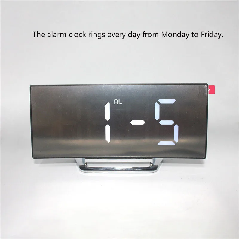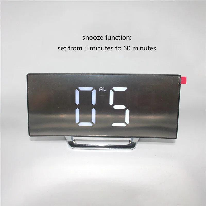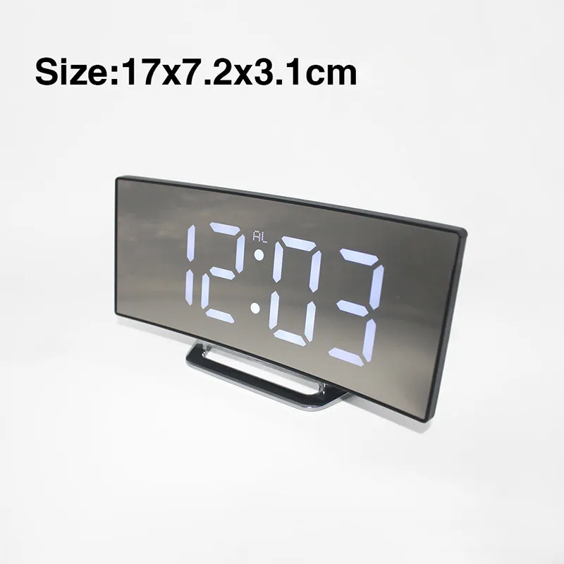 Цифровой будильник, светодиодные зеркальные настольные часы с изогн...