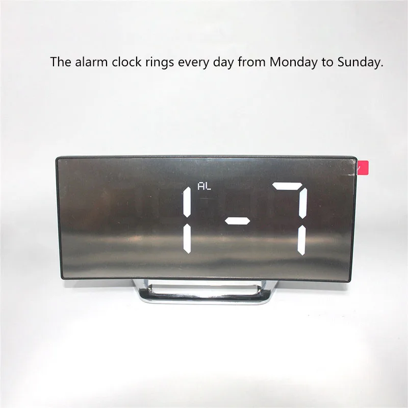 Цифровой будильник с изогнутым экраном, зеркальный светодиодный Буд...