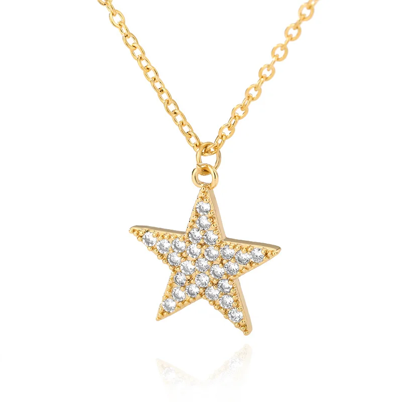 Женское свадебное ожерелье со звездами из фианита, чокер из нержавеющей стали, ожерелье с подвеской, золотая цепочка-ожерелье, Подарочная бижутерия