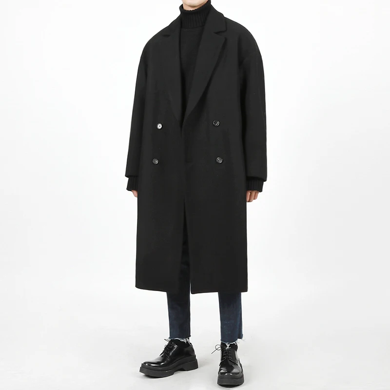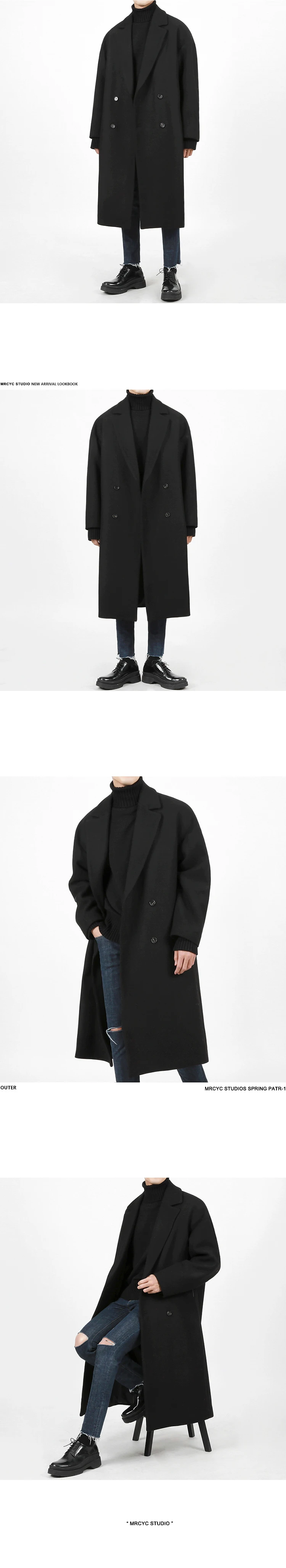 Однотонное шерстяное Стеганое пальто, мужское Длинное свободное шерстяное пальто с лацканами, мужское простое приталенное теплое двубортное пальто для мальчиков, 2021