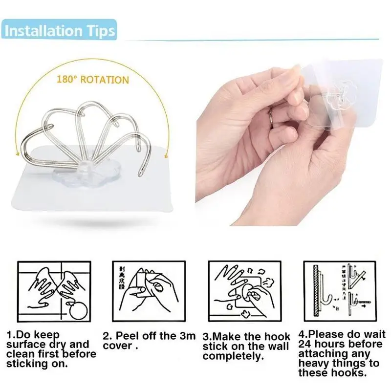 Характеристики продукта: этот крючок больше не нужен для свободного падения штепсельной вилки. Это хороший помощник для хранения жизни. Нержавеющая сталь, стекло, латекс, деревянный шкаф и т. д. может предотвратить этот крючок.
