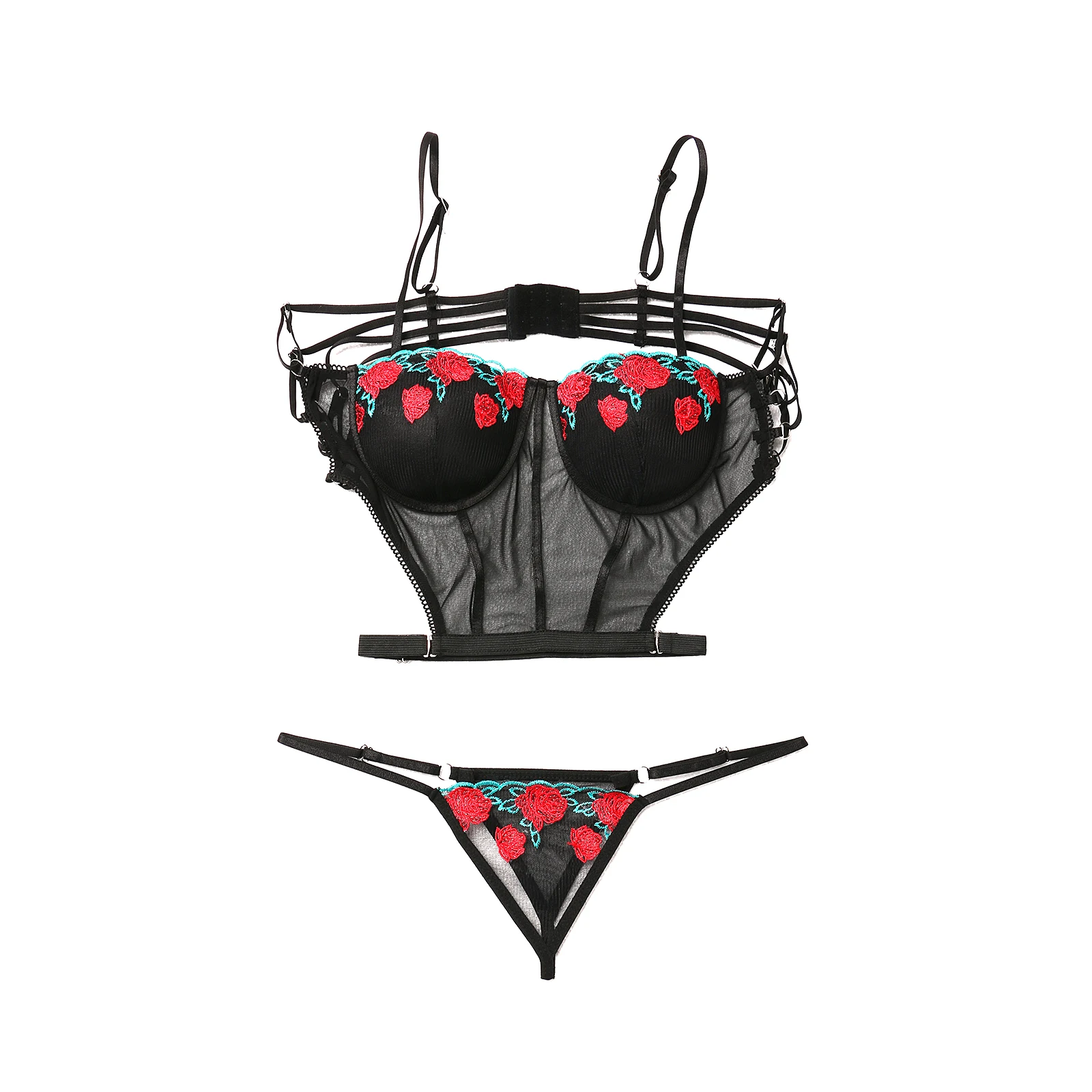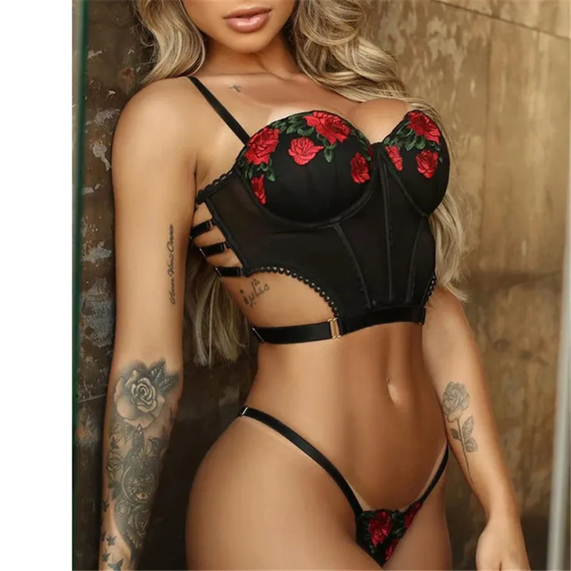 Комплект женского нижнего белья, с цветочной вышивкой, пуш-ап, бюстгальтер и тонкие прозрячные трусики в комплекте