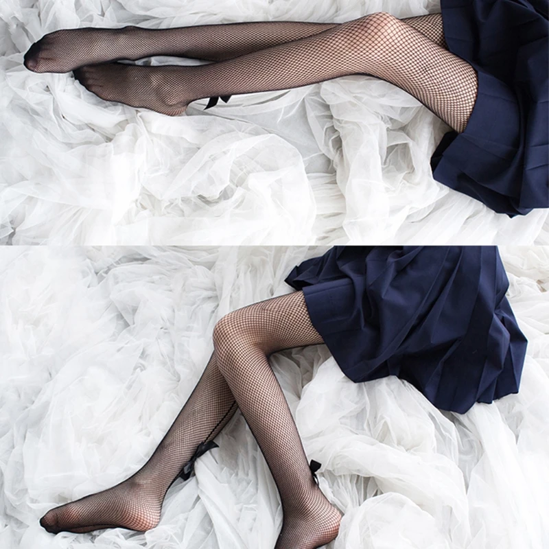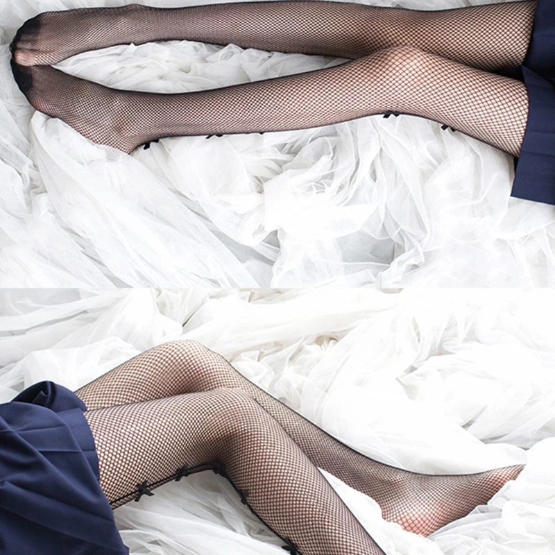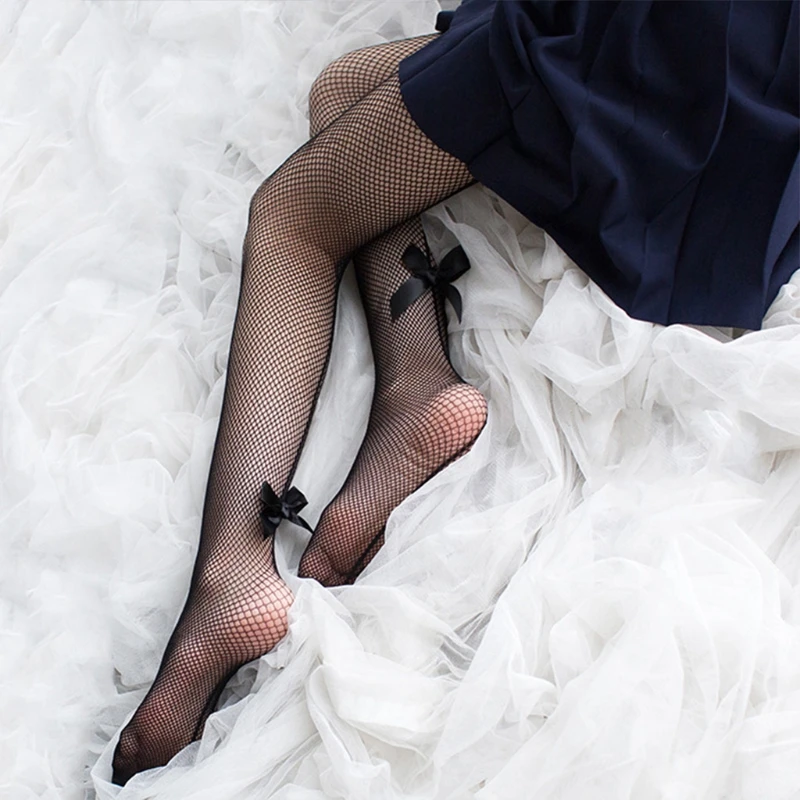 Высокая талия, эластичный пояс, сексуальные ажурные сетчатые колготки, милый Декор с бантом ручной работы.