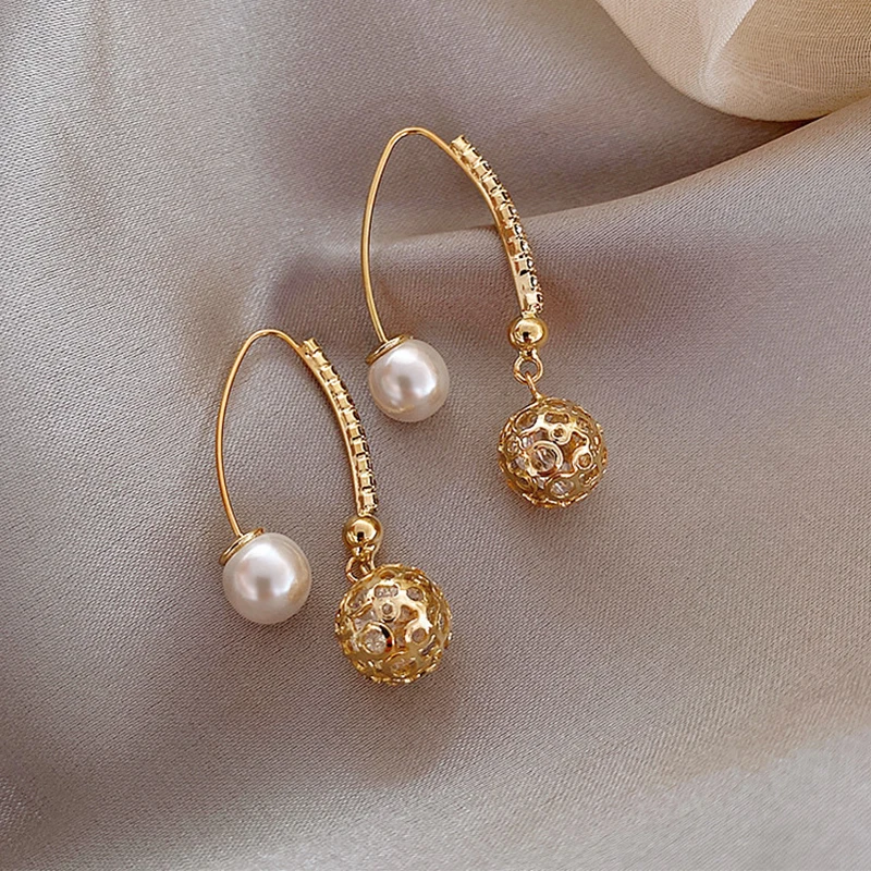 Женские Геометрические серьги, металлические серьги с жемчугом и ци...