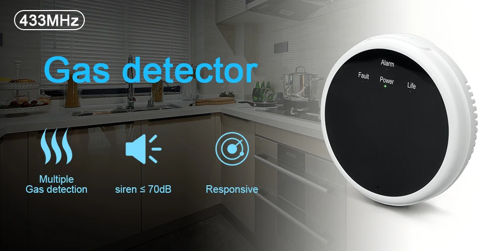 Этот детектор горючего газа может использоваться отдельно или подключаться к системе сигнализации 433 МГц.
