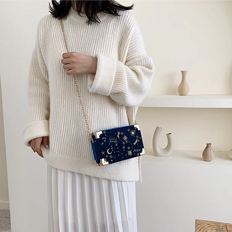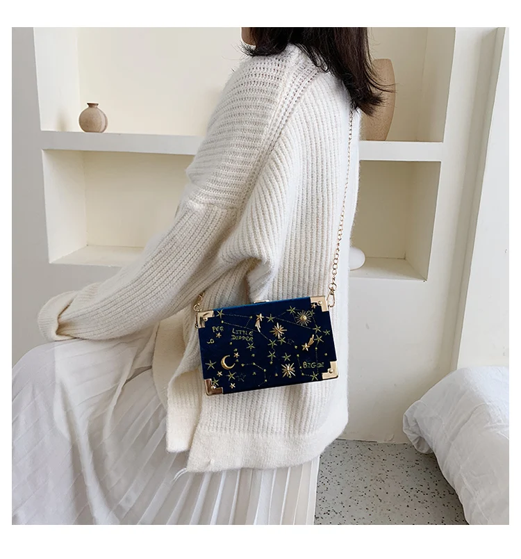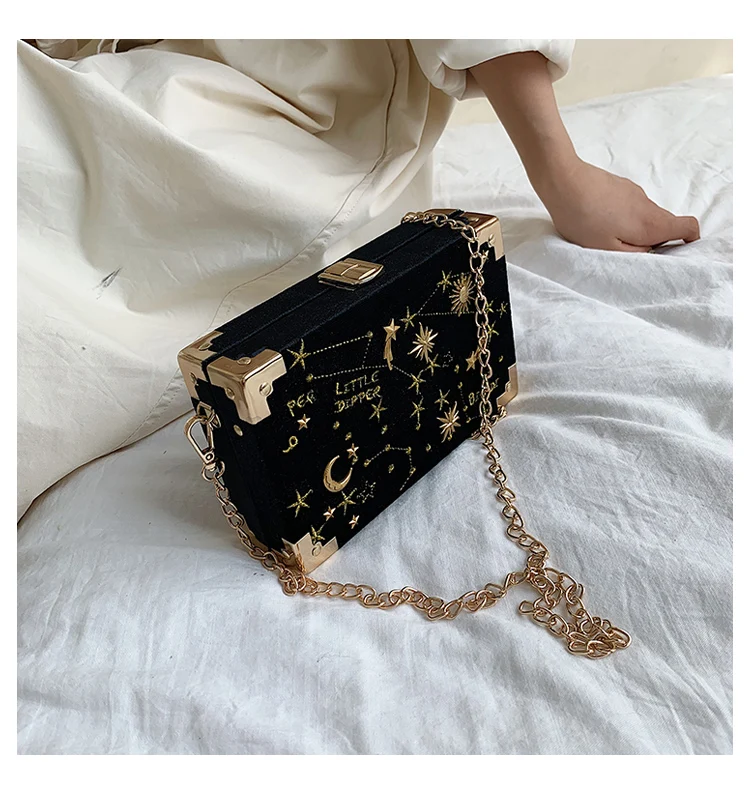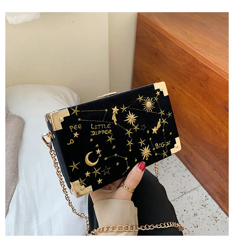 Металлическая маленькая сумка на плечо в форме коробки, вечерние замшевые сумочки, женская черная сумка через плечо с цепочкой, ZD2043