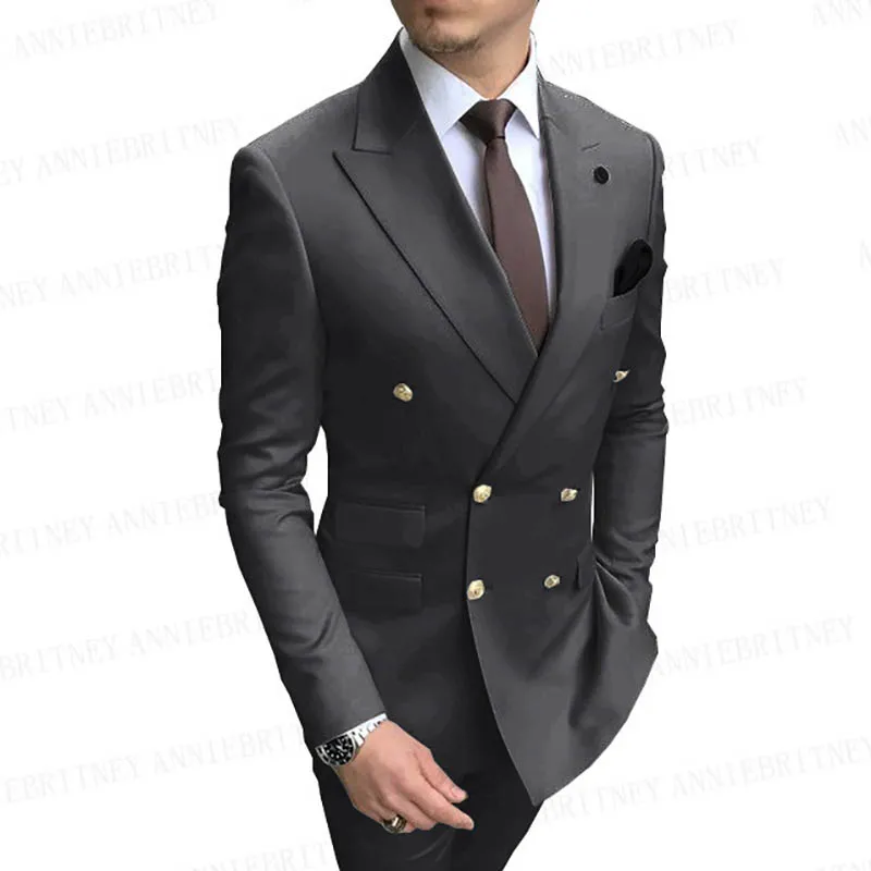 Классический темно-серый мужской костюм с золотыми пуговицами для свадьбы смокинг жениха под заказ двубортный угольная куртка с брюками комплект из 2 предметов