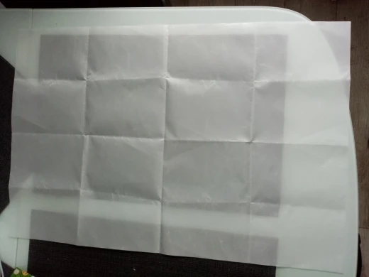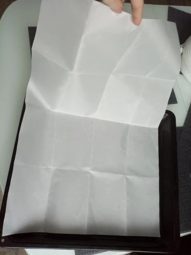 сложили в очень много слоёв в маленький квадратик, есть заломы, с одного края треснула, а так бумага супер, материал приятный, посмотрим надолго ли хватит